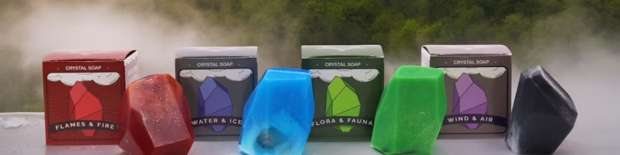 Chaque savon de notre gamme captivante s'inspire d'un élément fondamental : le Feu, l'Air, la Terre et l'Eau.