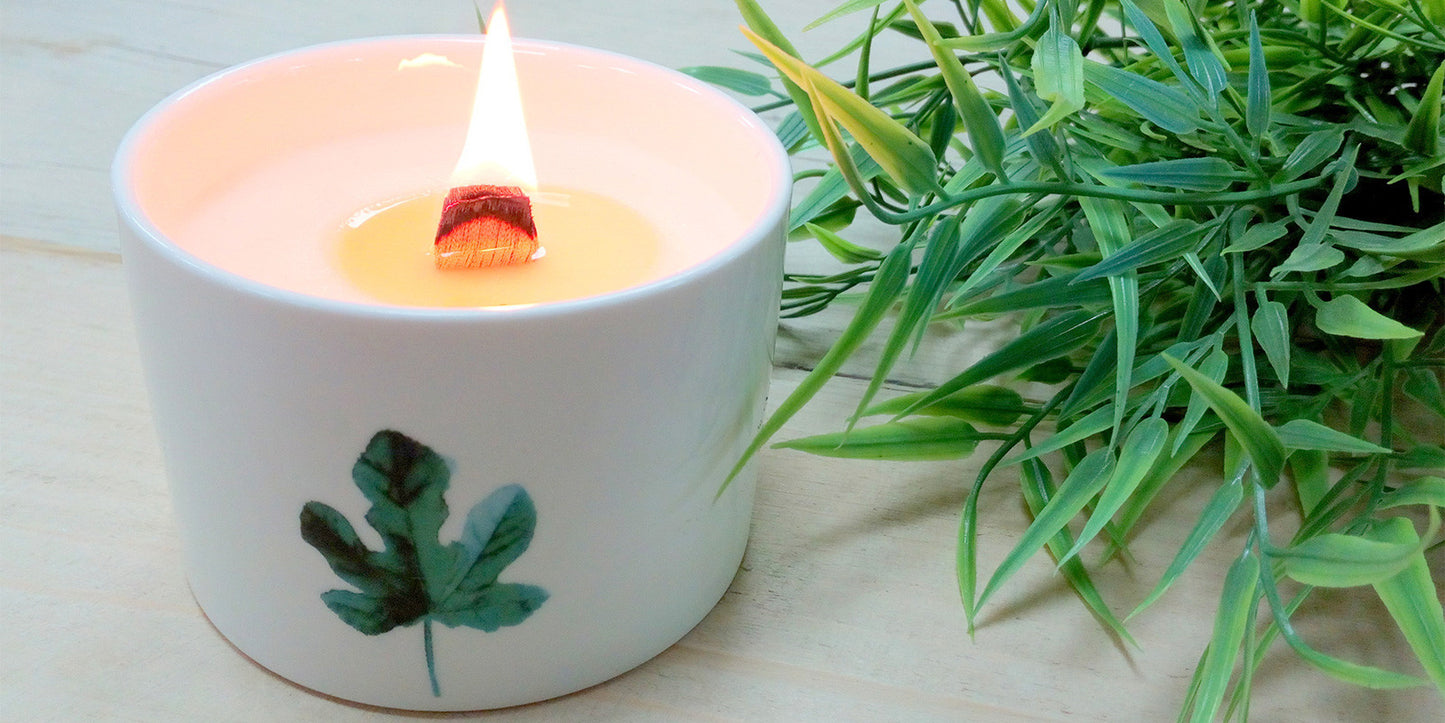 Les bougies botaniques sont présentées dans des pots ronds en céramique réutilisables, munis d'un code-barres, et joliment emballées dans un coffret cadeau. Chaque bougie contient une mèche en bois au lieu d'une mèche traditionnelle.