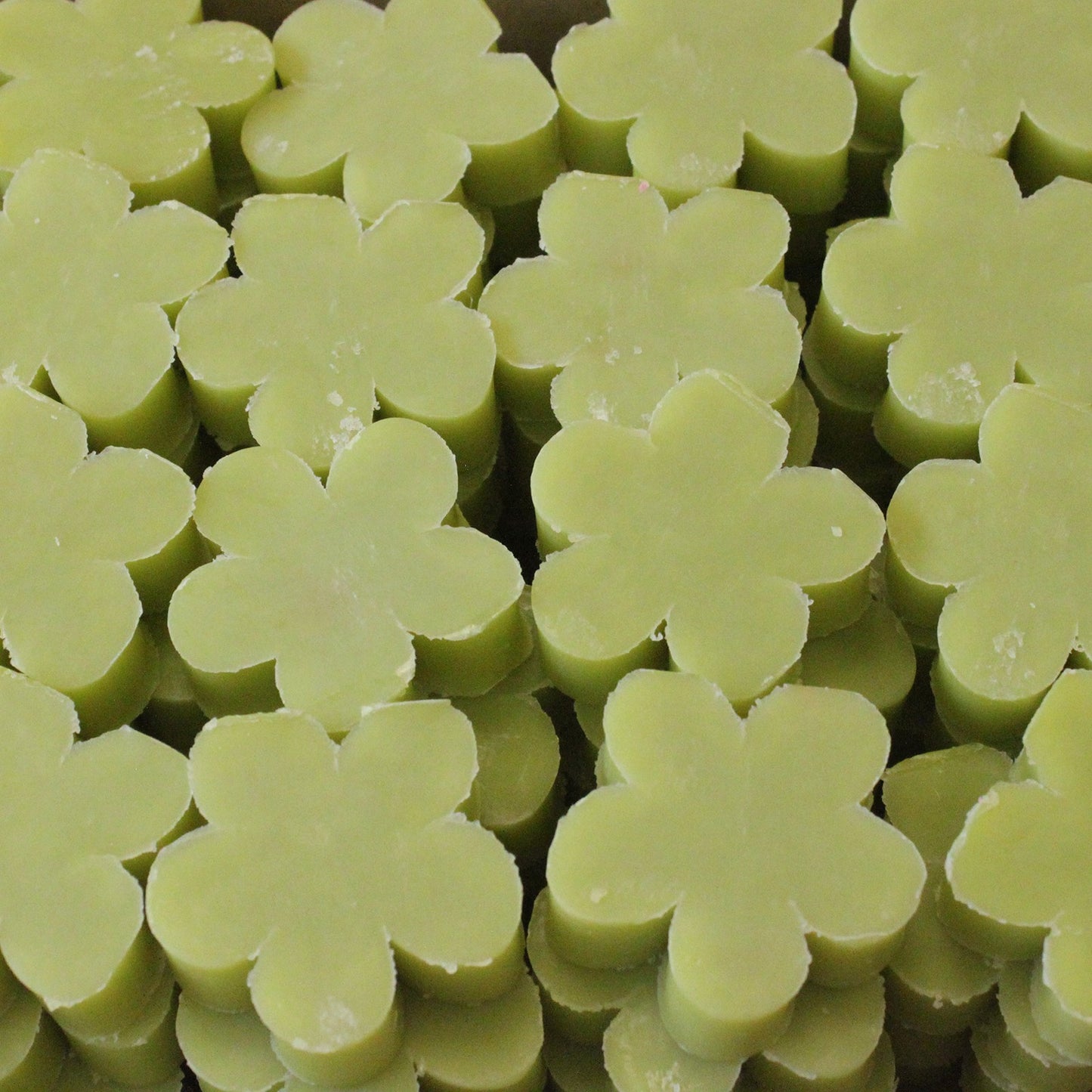 Les savons invités pèsent environ 20 grammes chacun et mesurent environ 45x40 mm.