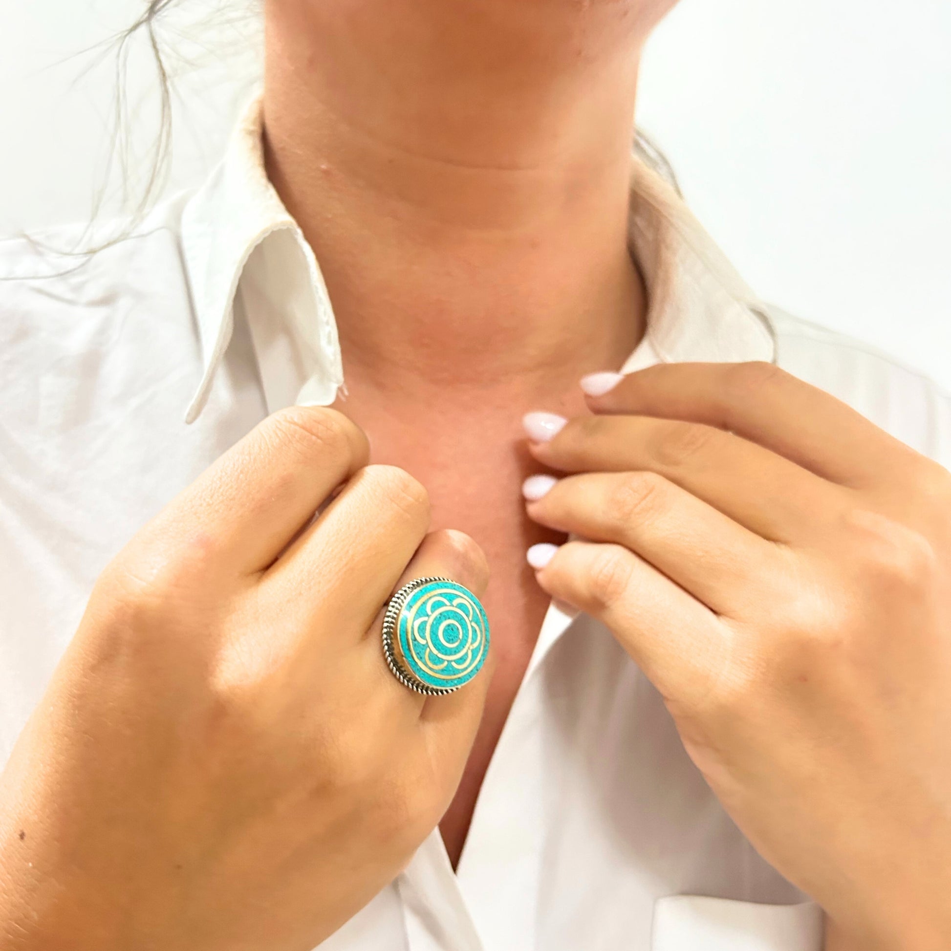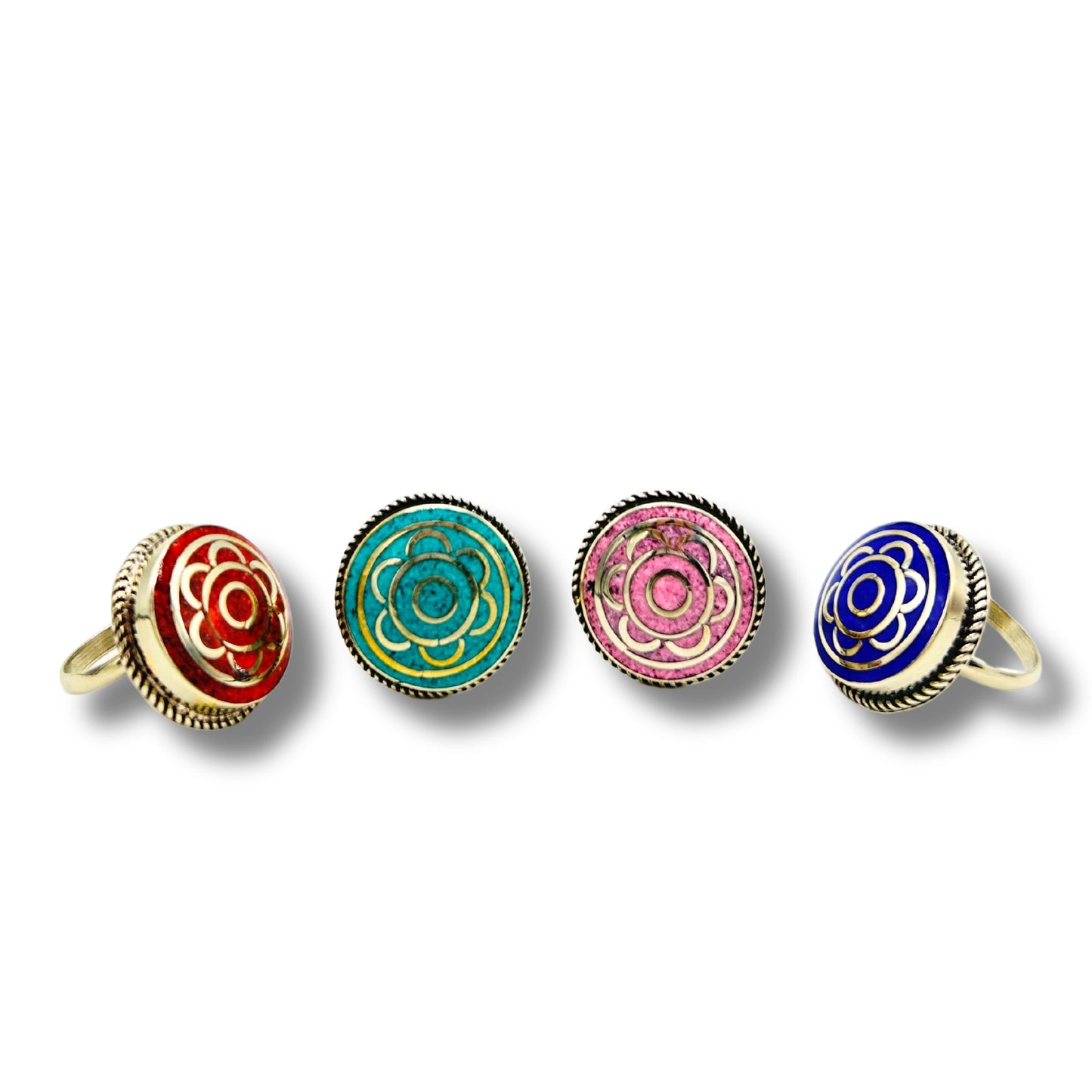 Ajoutez une touche exotique et colorée à votre style avec ce lot de 4 bagues rondes de style népalais (4 couleurs) . Inspirées par la riche culture et l'art vibrant du Népal, ces bagues sont disponibles en quatre couleurs distinctes, vous permettant de les associer à différentes tenues ou de les partager avec vos amis. Chaque bague a été soigneusement confectionnée, reflétant une esthétique unique qui capture à la fois l'essence traditionnelle et une touche de modernité.