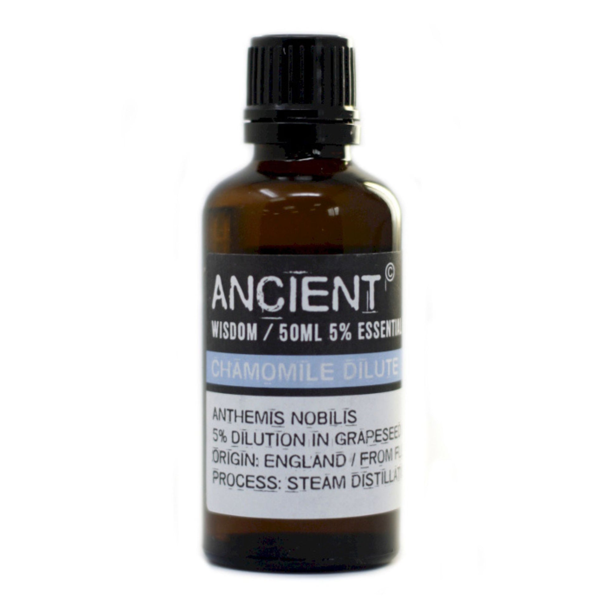 - Huile essentielle de camomille diluée à 5% dans de l'huile de pépins de raisin