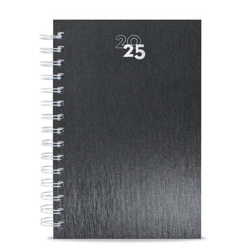 Agenda à anneaux nickelé effet aluminium rayé et couverture rigide métallisée. 176 pages microperforées avec un rapport annuel jour par jour, les jours fériés nationaux et internationaux, les langues, un calendrier triennal, les adresses et numéros de téléphone des dates utiles, les fêtes patronales et une carte politique dépliante de l'Europe. Mois et jours en espagnol, portugais, français, anglais, allemand, italien, basque, catalan et galicien. Disponible en deux formats : réf. Z-823, 16 x 21,5 cm, et réf. Z-824, 19 x 25 cm. 352 feuilles incluses.