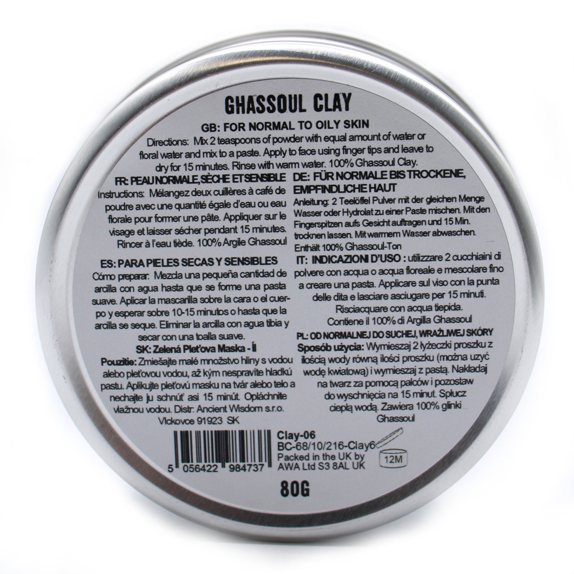 • Mode d'emploi : mélanger 2 petites cuillères d'eau et 1 cuillère d'argile à appliquer sur le visage