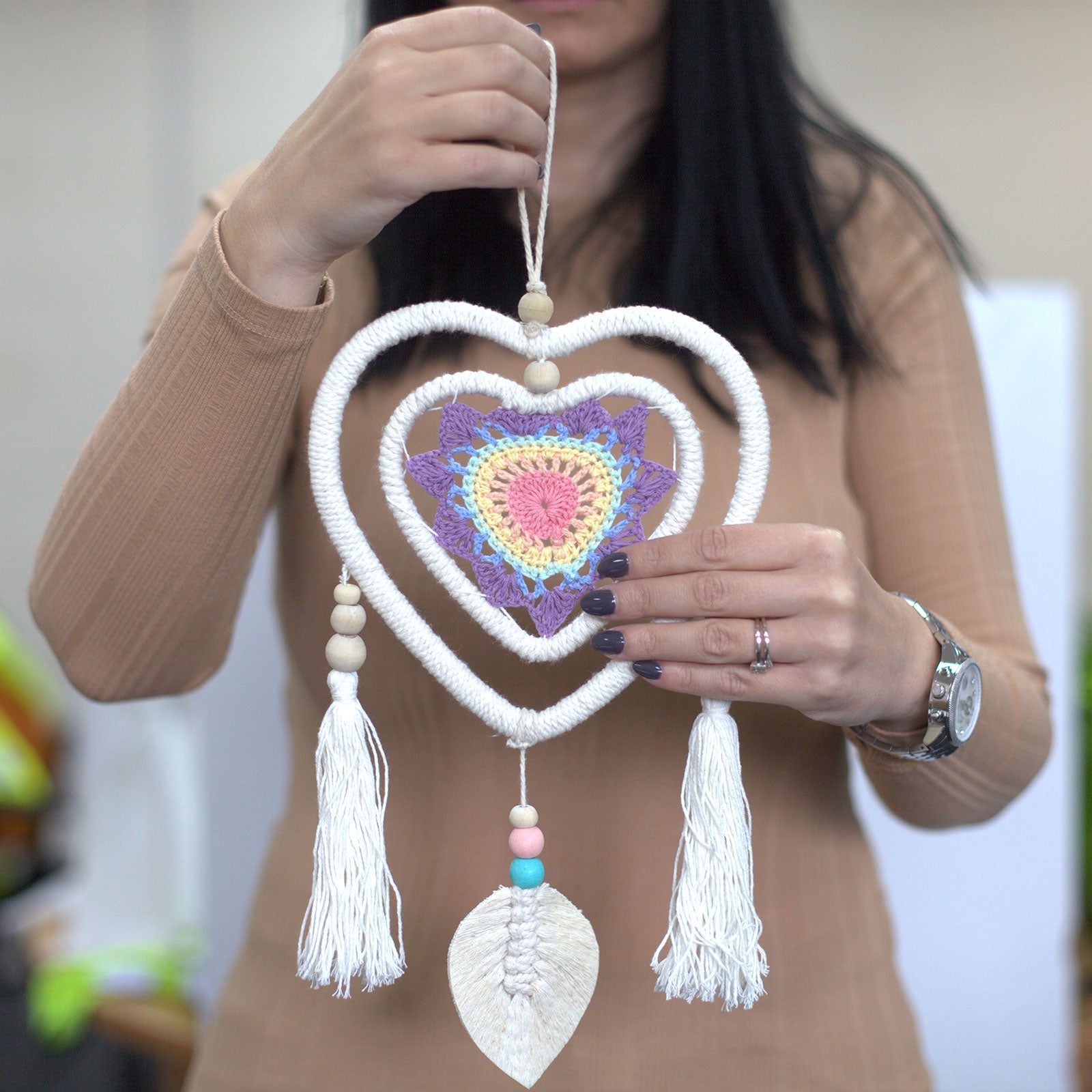 Fabriqué avec soin à partir de matériaux haut de gamme, cet attrape-rêves est plus qu'un simple élément décoratif ; c'est un symbole d'amour et de protection. Chaque fil et chaque plume ont été sélectionnés pour créer une harmonie de couleurs qui embellit et transmet la sérénité. Sa taille moyenne permet de l'accrocher dans différentes pièces, ajoutant une touche de couleur et d'originalité où que vous le placiez.