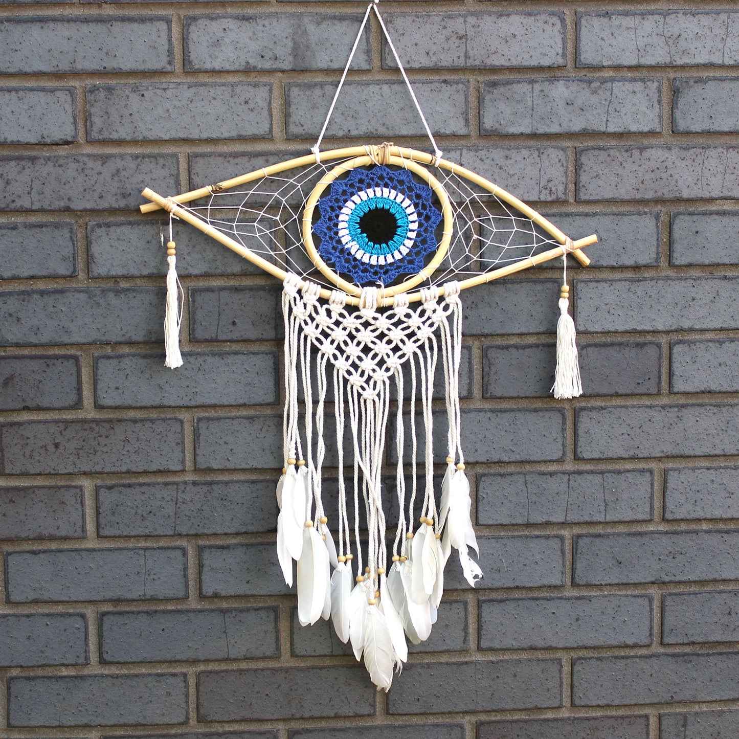 Attrape-rêves - Macramé moyen Mauvais œil Bleu / Blanc / Noir