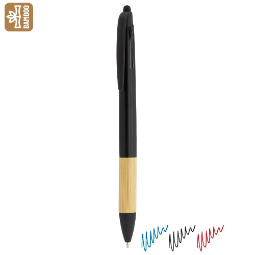 Le stylet tricolore (bleu, noir et rouge) allie fonctionnalité et durabilité. Conçu pour les amateurs de produits éco-responsables, ce stylo original est fabriqué en bambou, un matériau réputé pour sa durabilité et son respect de l'environnement. Son élégante finition en bambou, rehaussée de détails métalliques, attire non seulement le regard, mais assure également une écriture fluide et confortable.