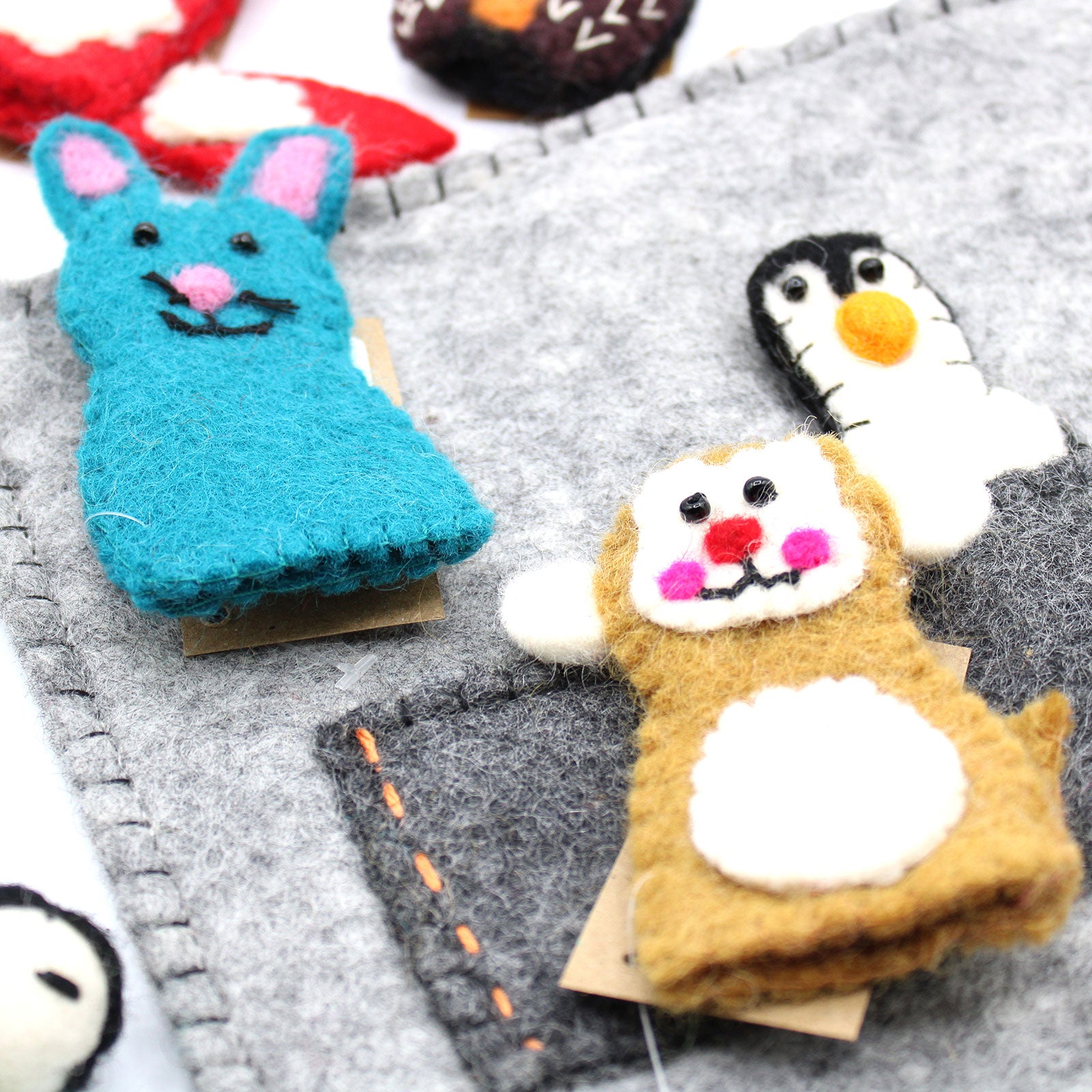 Cette collection dynamique de sacs pour tablettes en forme de marionnettes à doigts est idéale pour ceux qui souhaitent ajouter une touche de créativité et de fantaisie à leur quotidien. Fabriqué à la main au Népal en feutre naturel, chaque sac est unique et pratique, avec une marionnette dissimulée dans une petite poche intérieure.