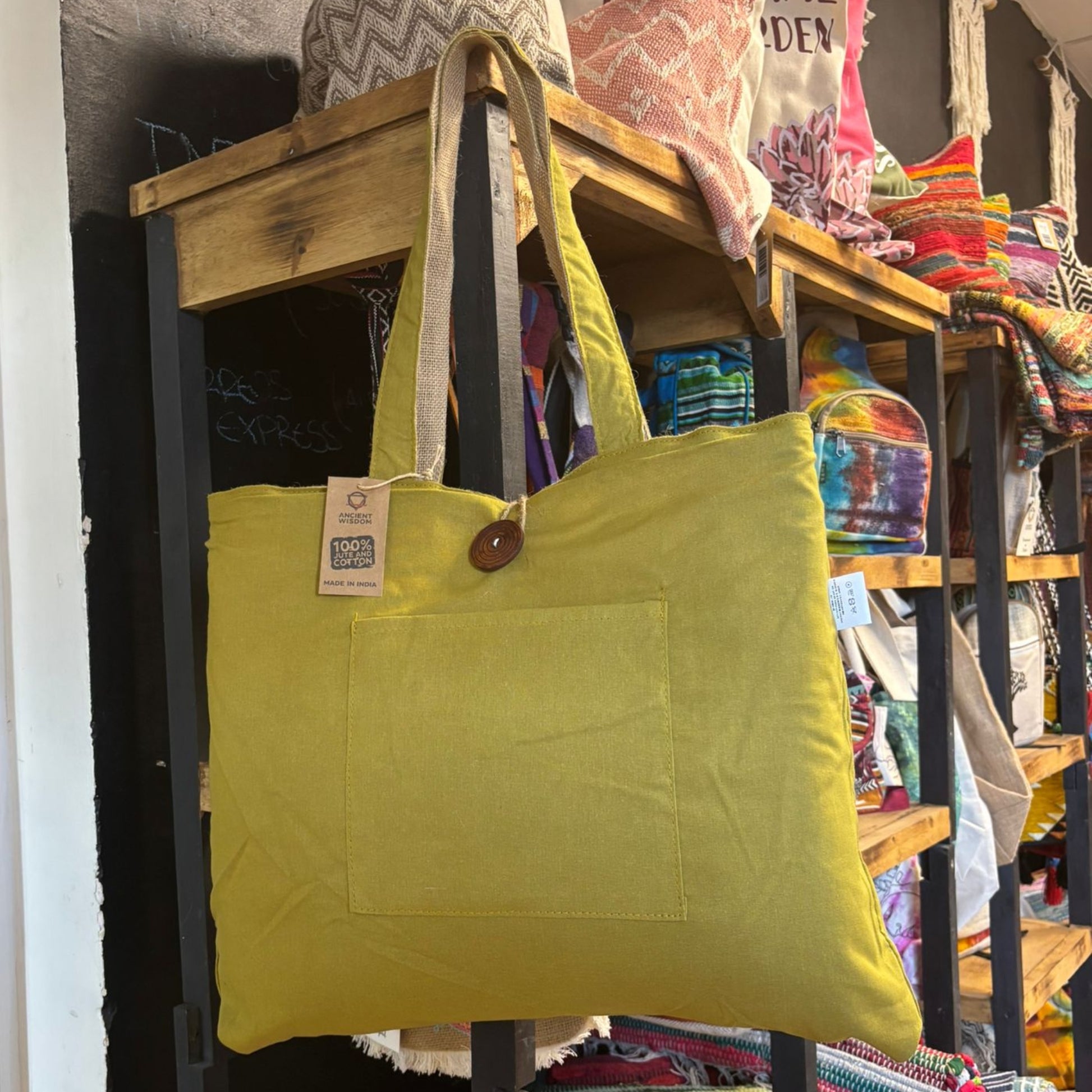 Grâce à sa conception réversible, ce sac vous offre deux finitions différentes : une teinte pistache vibrante grâce au coton de haute qualité, et une texture naturelle et rustique du jute. Grâce à cette polyvalence, le grand sac fourre-tout réversible en jute et coton – Pistache s'adapte à toutes les tenues et situations, d'une escapade d'un week-end à une virée au marché.