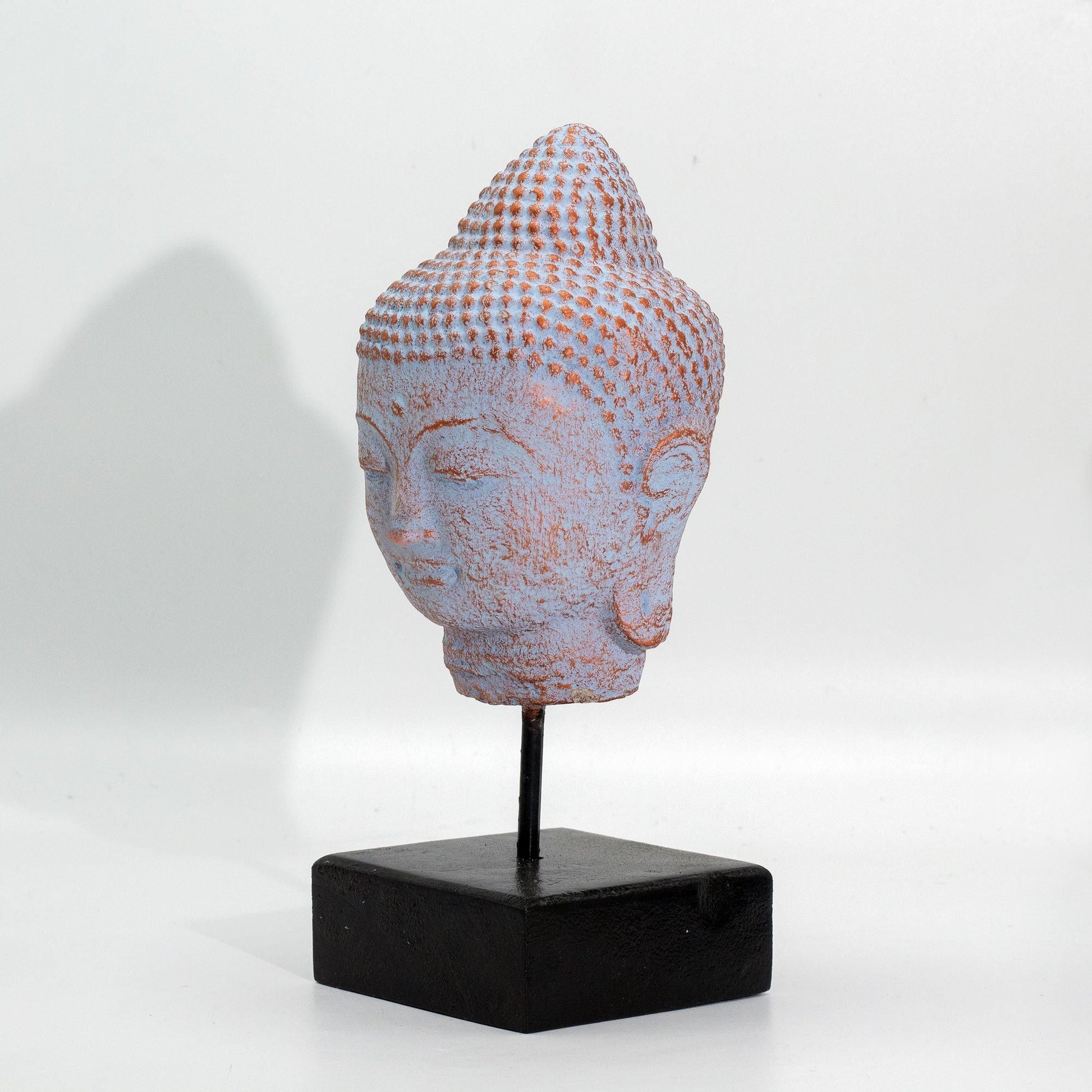 Ajoutez une touche de spiritualité et d'élégance artistique à votre espace avec cette magnifique tête de Bouddha couché, d'une teinte bleu-cuivre distinctive. Cette sculpture capture l'expression de paix et de contemplation de Bouddha, évoquant un sentiment de calme profond et d'équilibre intérieur où qu'elle soit placée.
