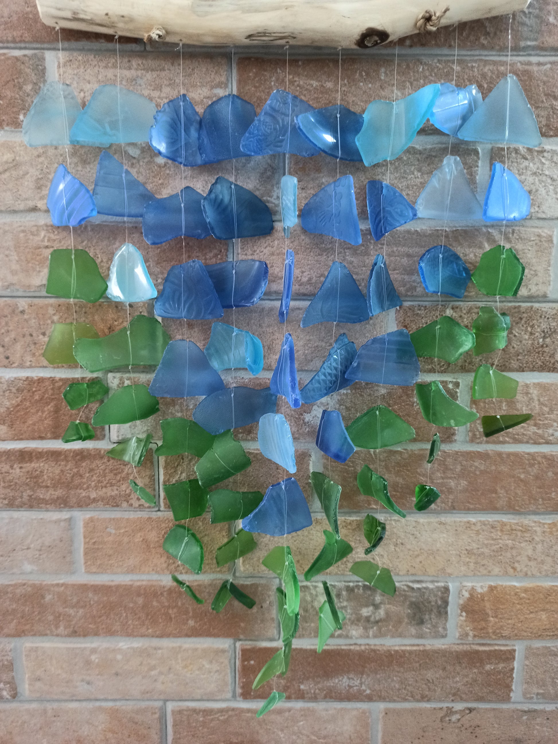 Illuminez votre intérieur avec le charme durable du carillon en verre recyclé – Bleu et Vert , une pièce alliant la beauté de l'artisanat et le respect de l'environnement. Ce carillon unique a été soigneusement fabriqué en verre recyclé, garantissant ainsi que chaque pièce est unique et porte en elle une histoire de créativité et de respect de la planète.