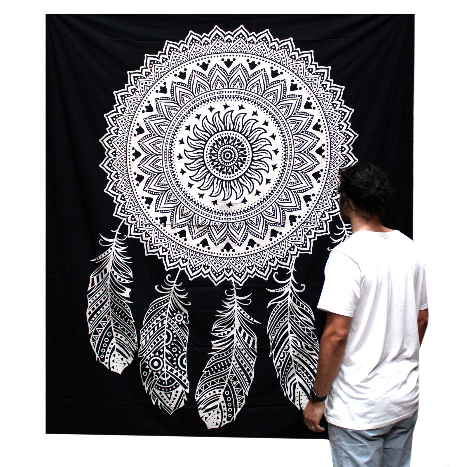 Enveloppez votre chambre de mysticisme et de beauté avec la couette double en coton B&W + tapisserie - Attrape-rêves , un accessoire indispensable qui transformera votre espace en un havre de paix et de bon goût. Confectionnée en coton de la plus haute qualité, cette couette offre non seulement douceur au toucher et durabilité exceptionnelle, mais aussi une touche d'élégance grâce à son motif noir et blanc qui capture l'essence des attrape-rêves, symboles traditionnels de protection et de rêves agréables.