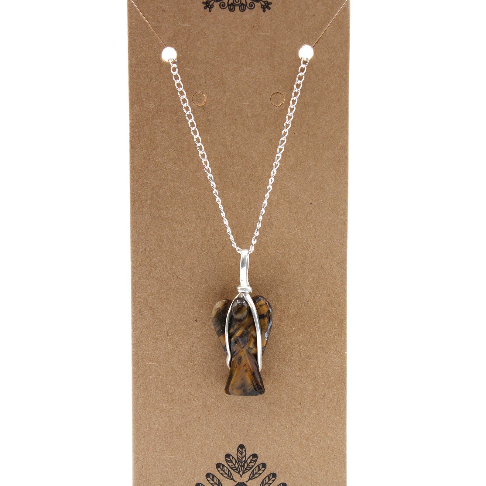 Pendentif Ange Gardien en Pierre Précieuse - Œil de Tigre