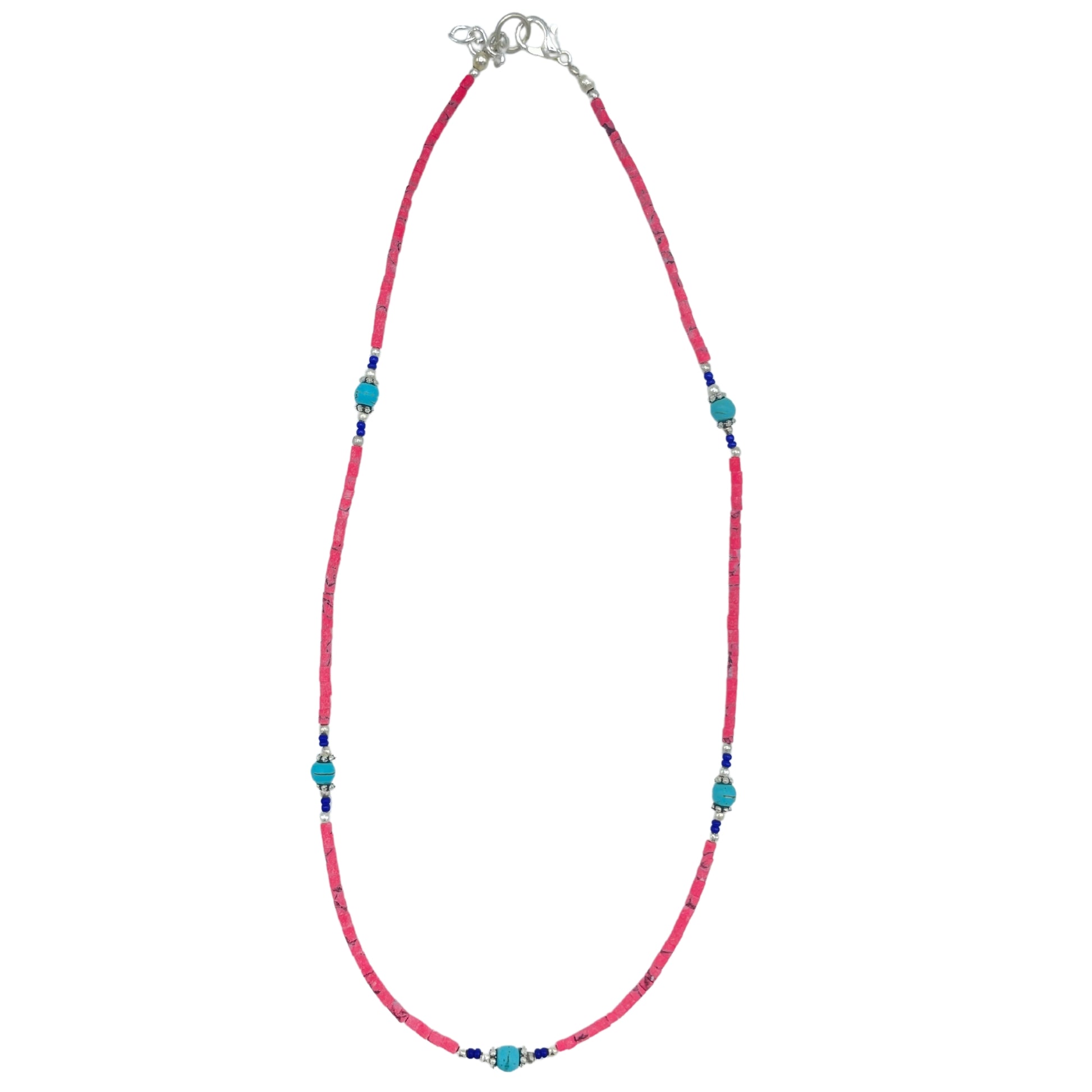 Collier népalais en pierres précieuses extra-fines - perles de corail rose et turquoise