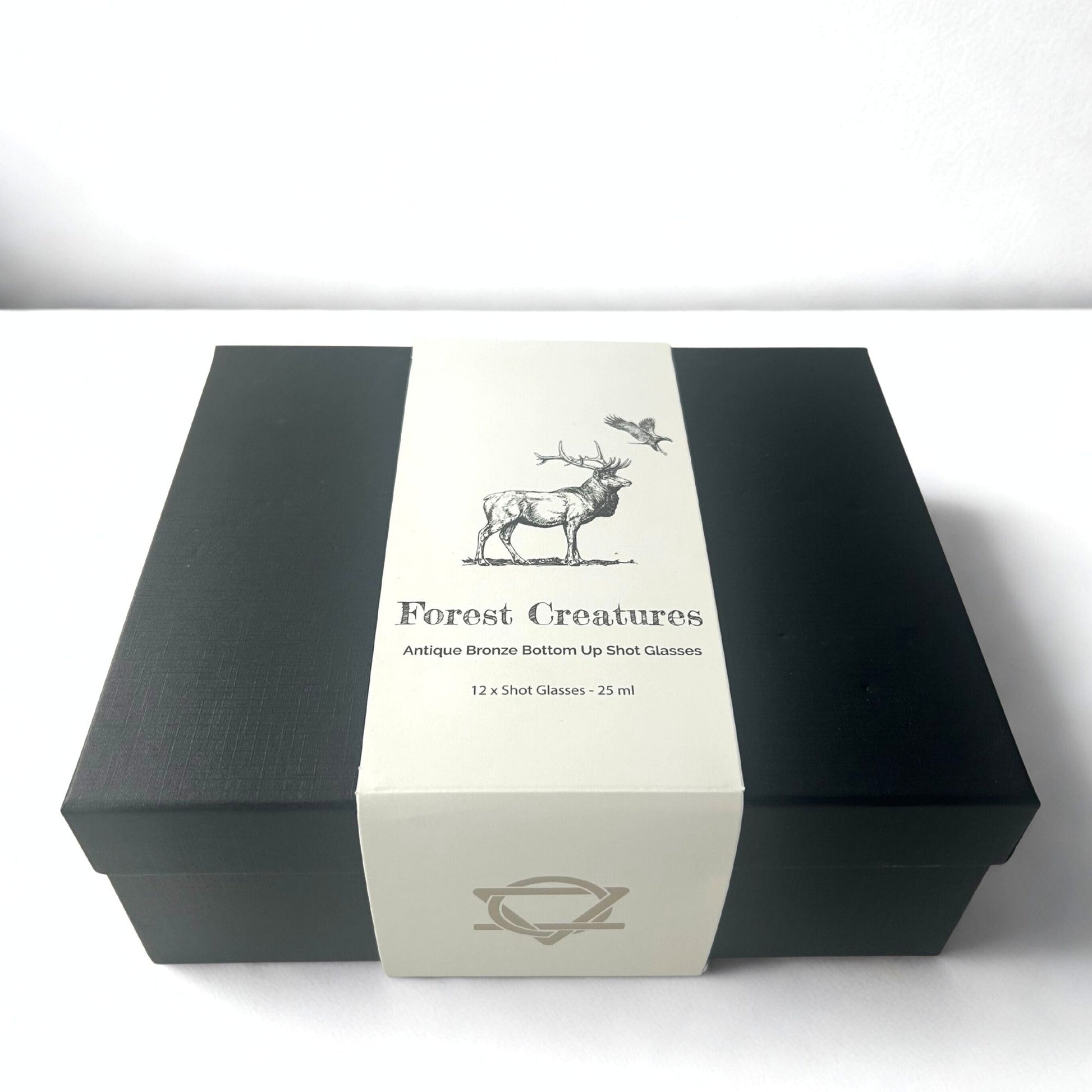 Conjunto de regalo de 12 vasos de chupito Bottom Up (25ml) - Bosque y Criaturas Místicas - Bronce Antiguo