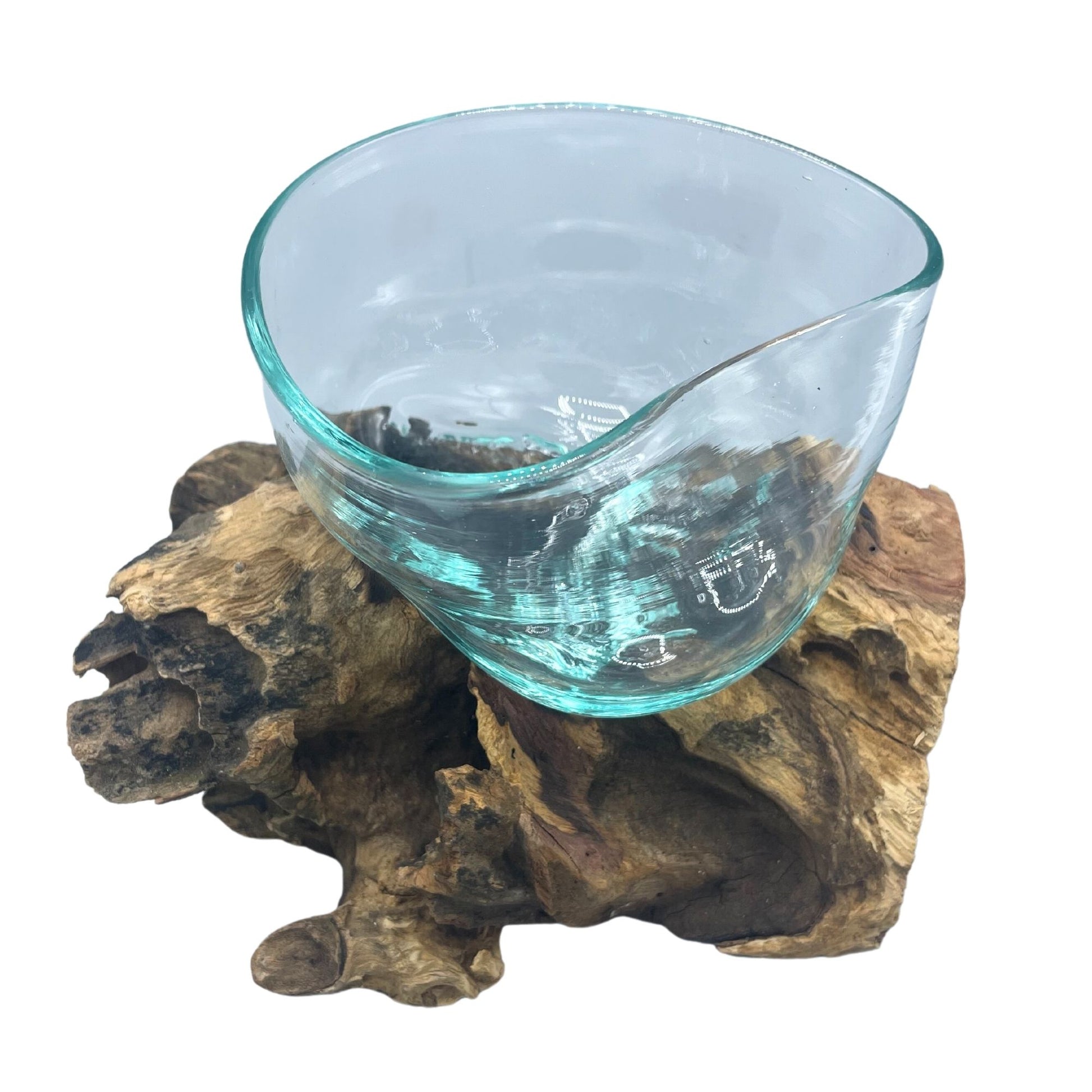 Imaginez ce bol exceptionnel comme pièce maîtresse de votre table à manger ou comme pièce unique dans votre salon. En plus d'être un objet décoratif raffiné, il est parfait pour exposer avec élégance de petits objets et apporter une touche de sophistication à n'importe quel recoin de votre maison. Son design, qui harmonise la rigidité du bois avec les formes organiques et fluides du verre, fait de chaque pièce une œuvre d'art unique.