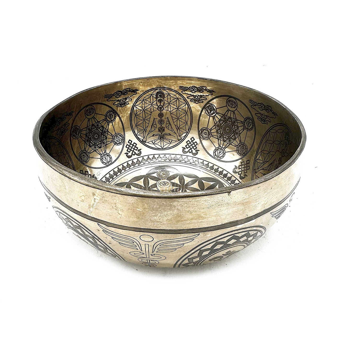 Bol chantant tibétain gravé pour la guérison - 16 cm - 7 chakras