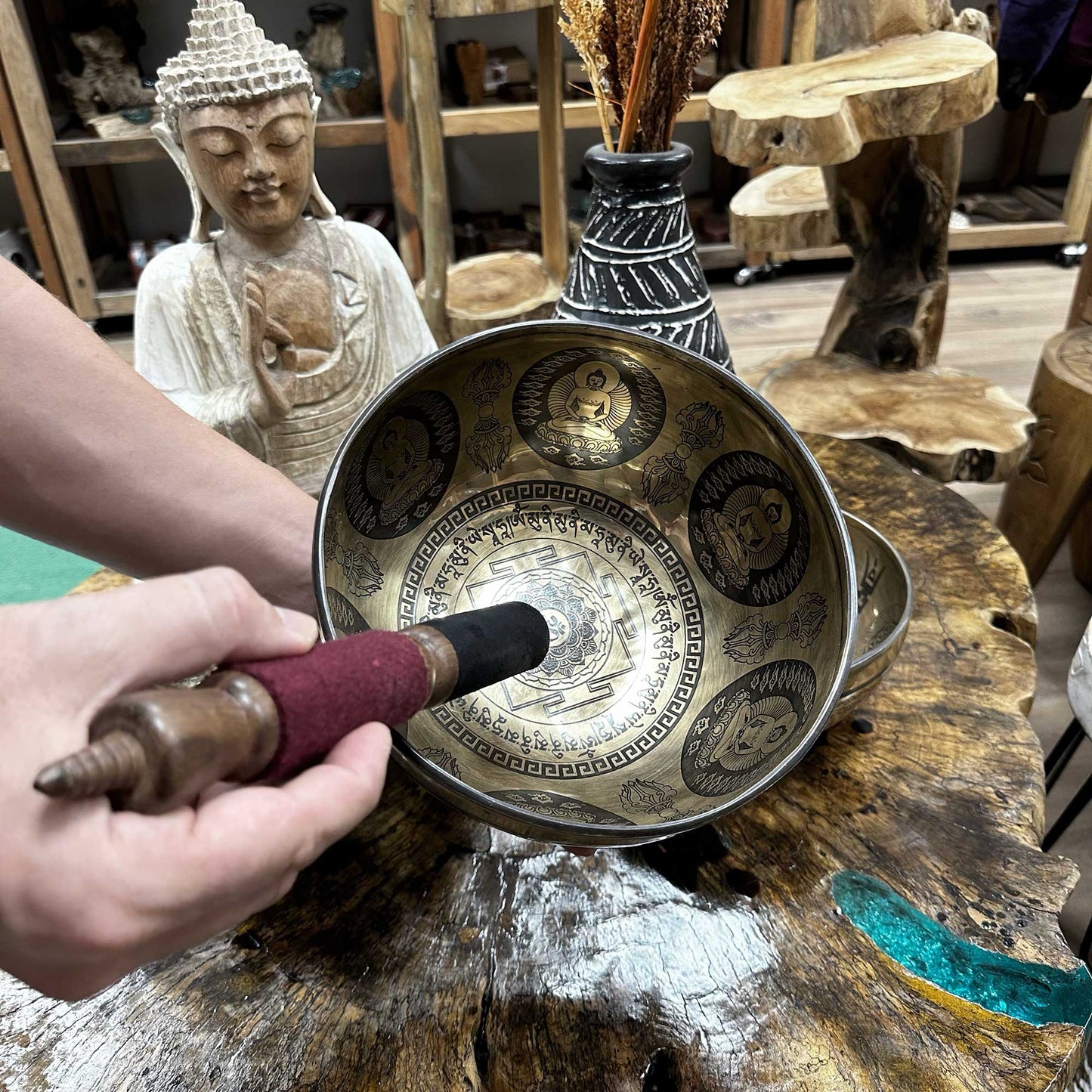 Bol chantant tibétain gravé - 16 cm - 7 chakrasBol chantant tibétain gravé - 16 cm - 7 chakras