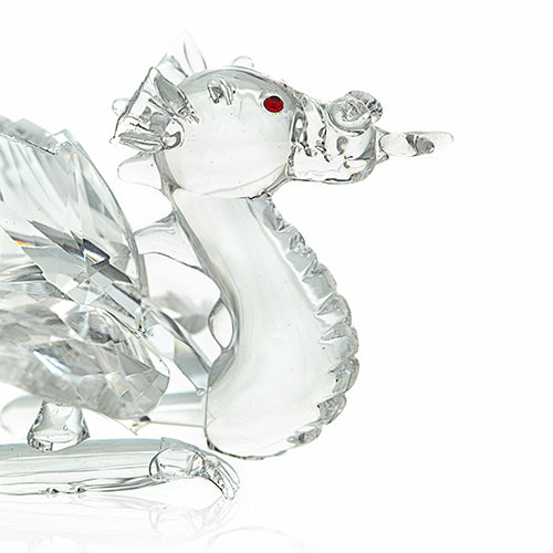Plongez dans l'univers mystique et fantastique du majestueux Dragon de Cristal aux Yeux Rouges , une pièce unique qui capture l'essence de ces êtres légendaires. Fabriqué avec le plus grand soin, ce dragon est taillé dans un cristal de haute qualité, lui conférant une transparence inégalée et une brillance qui capte la lumière, illuminant n'importe quel espace de sa présence.