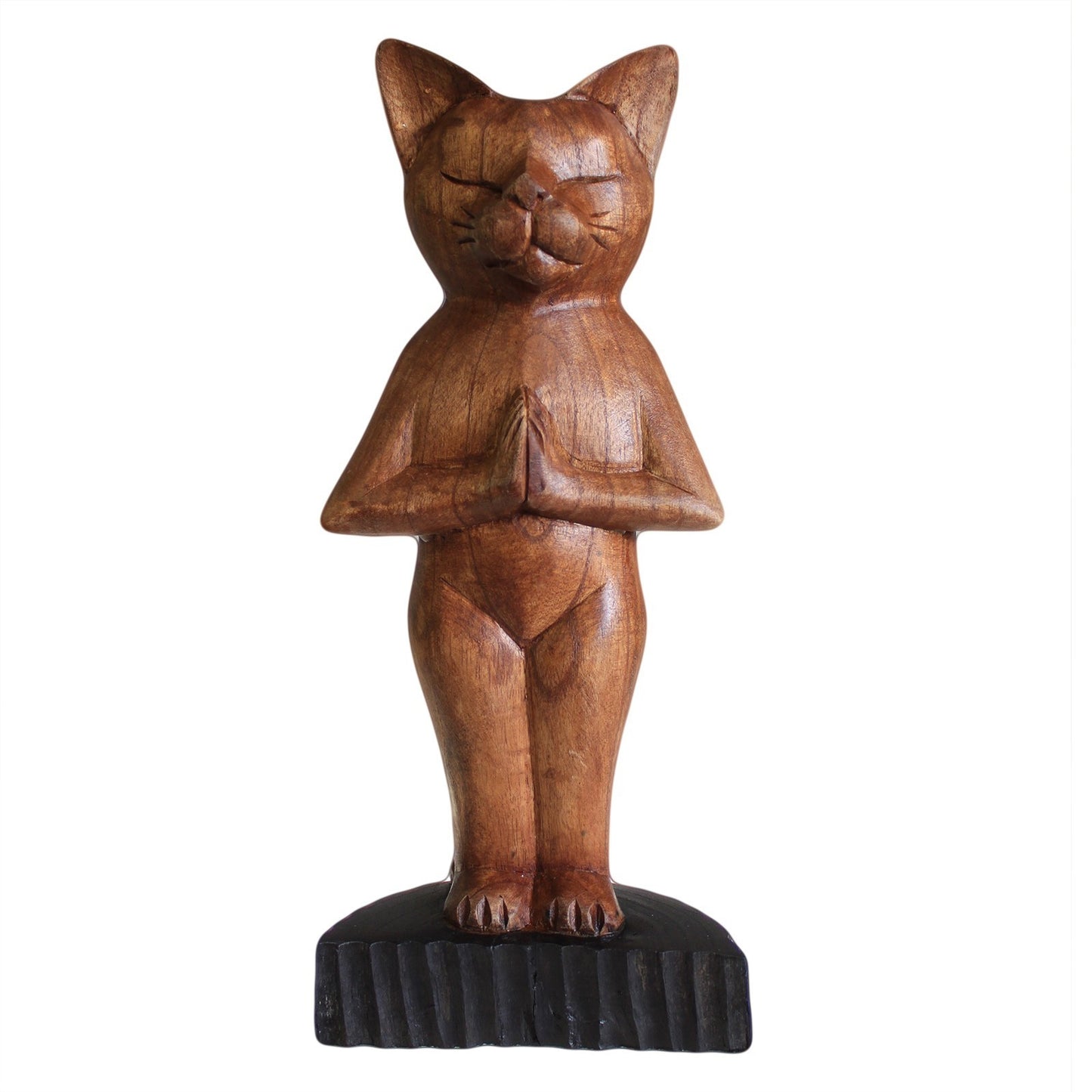 Ces chats de yoga en bois uniques et originaux embelliront n'importe quel intérieur et sont parfaits pour les amateurs de yoga. Inspirant et expirant profondément, ces chats en bois pratiquent le yoga hindou dans une sculpture réalisée par des artisans indonésiens et disponible en dropshipping par AW Artisan.
