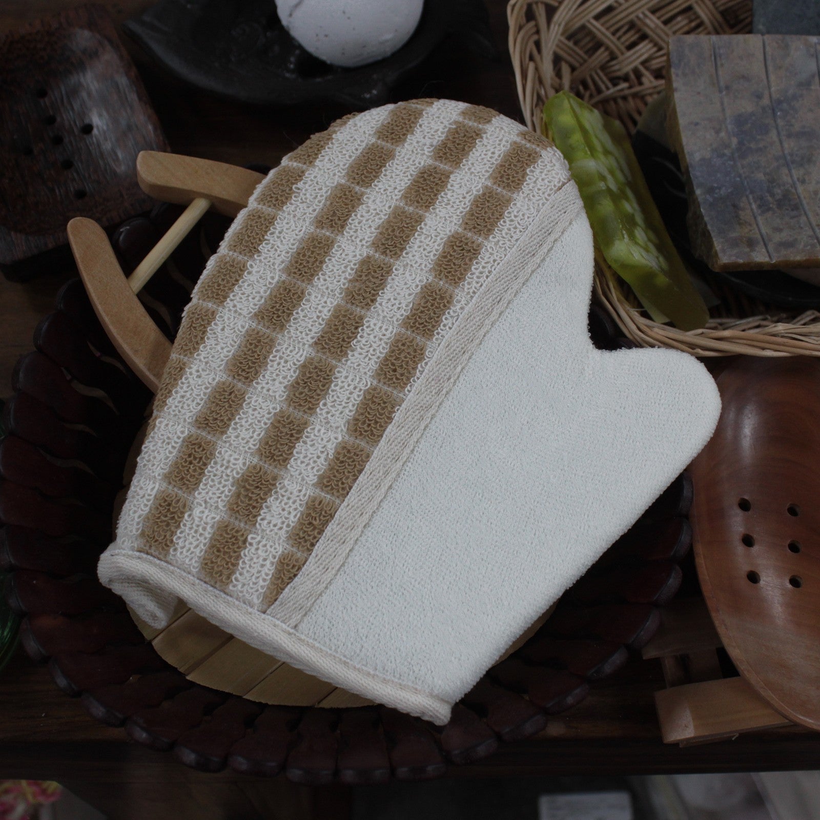 • Lujosos guantes de yute natural esenciales para cualquier baño