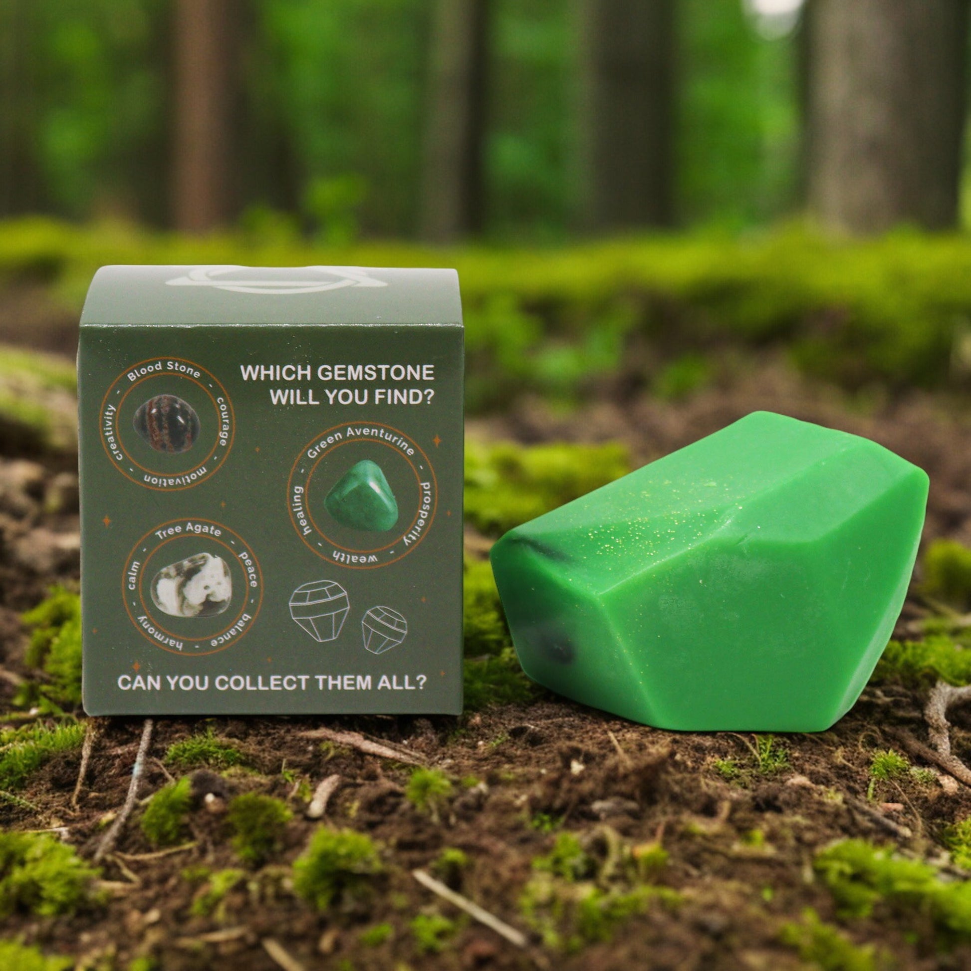Ce savon ravira vos clients avec une sélection de cristaux comprenant de la pierre de sang pour renforcer l'énergie, de l'aventurine verte pour attirer la prospérité et l'abondance et de l'agate arborescente pour favoriser la connexion avec la nature.