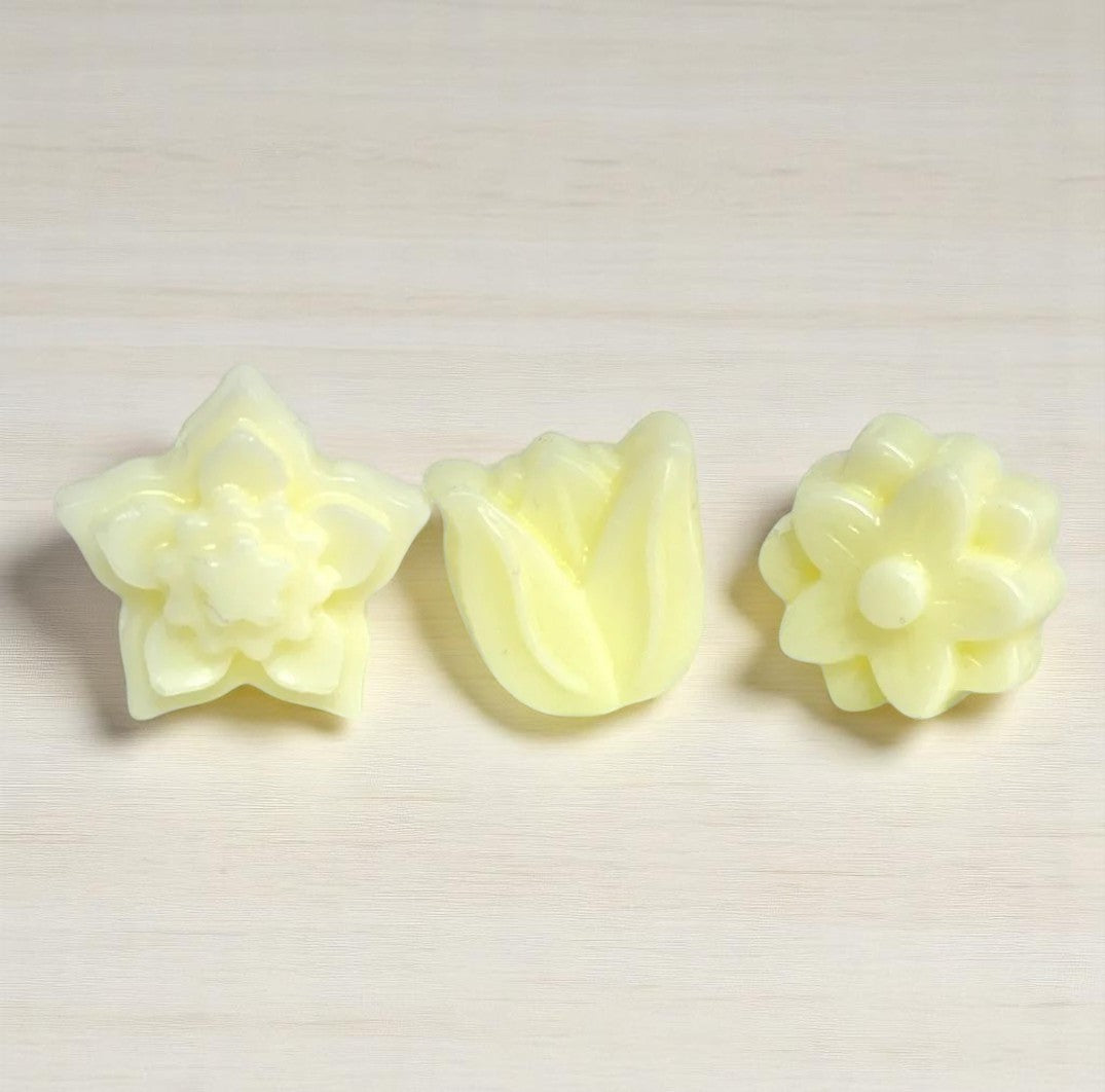 - Jaboncitos en forma de flor con una amplia variedad de aromas naturales
