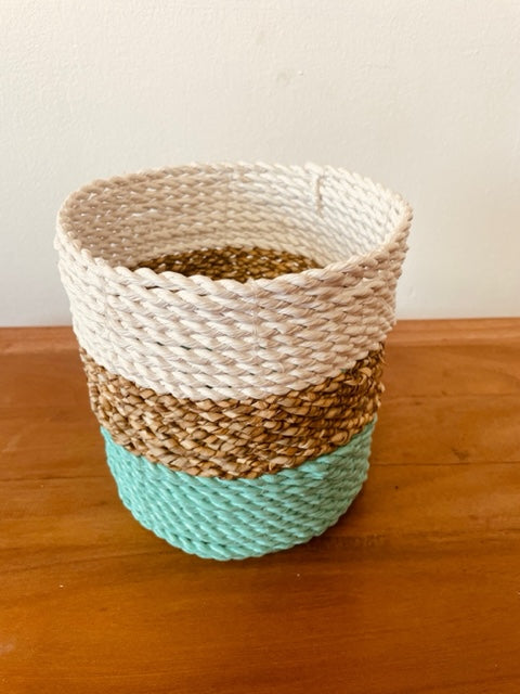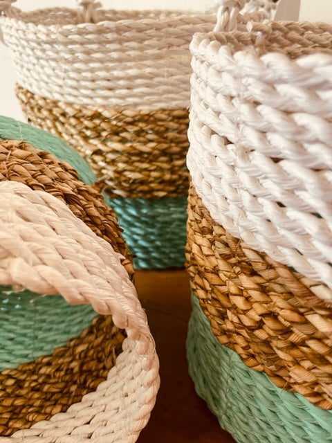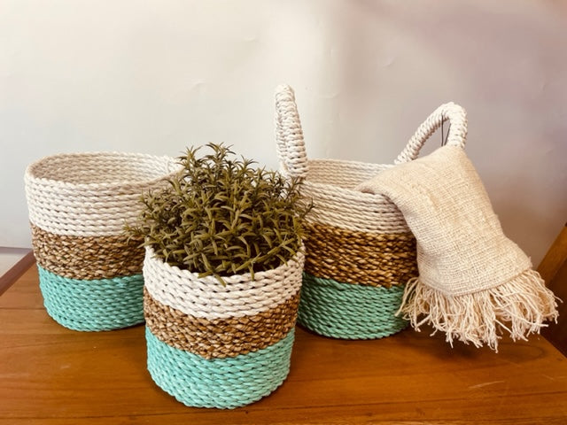 Ensemble de paniers en jonc de mer - Vert/Naturel/Blanc