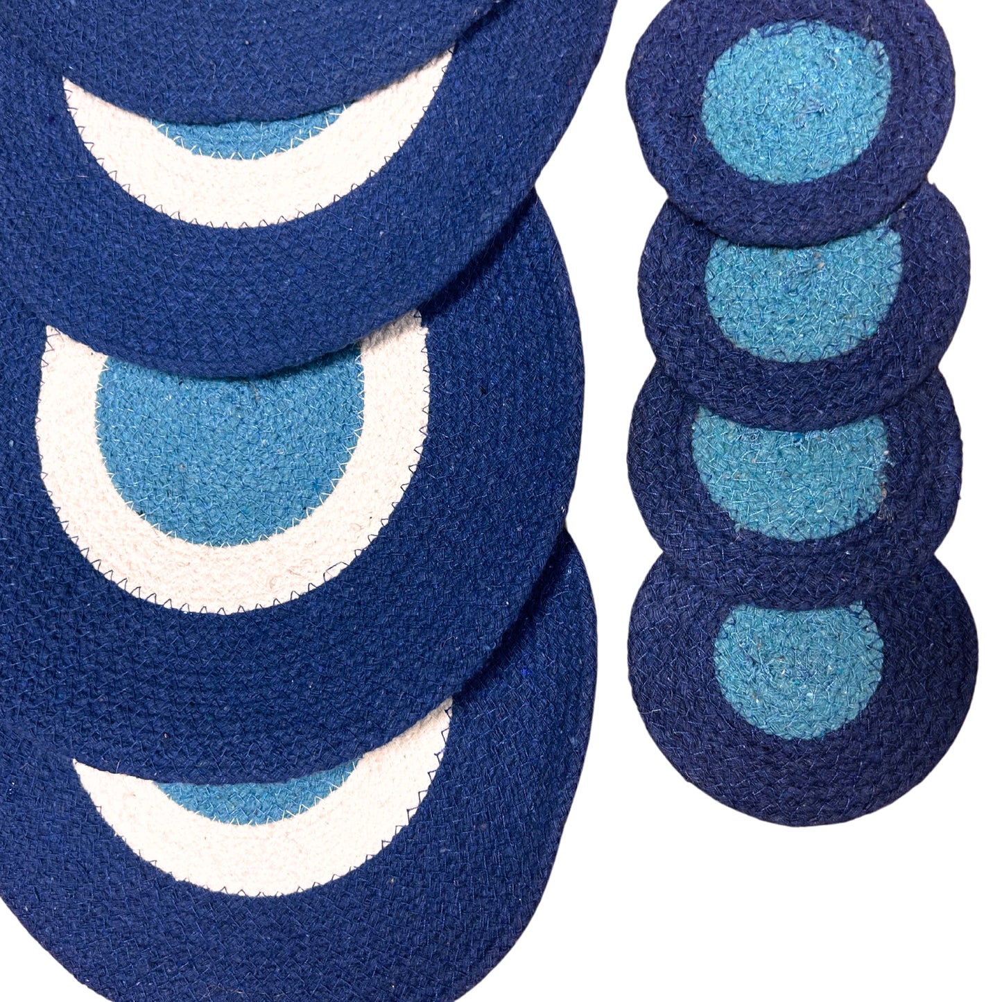 Ensemble de dessous de verre et de sets de table en corde de jute Evil Eye (4 de chaque)