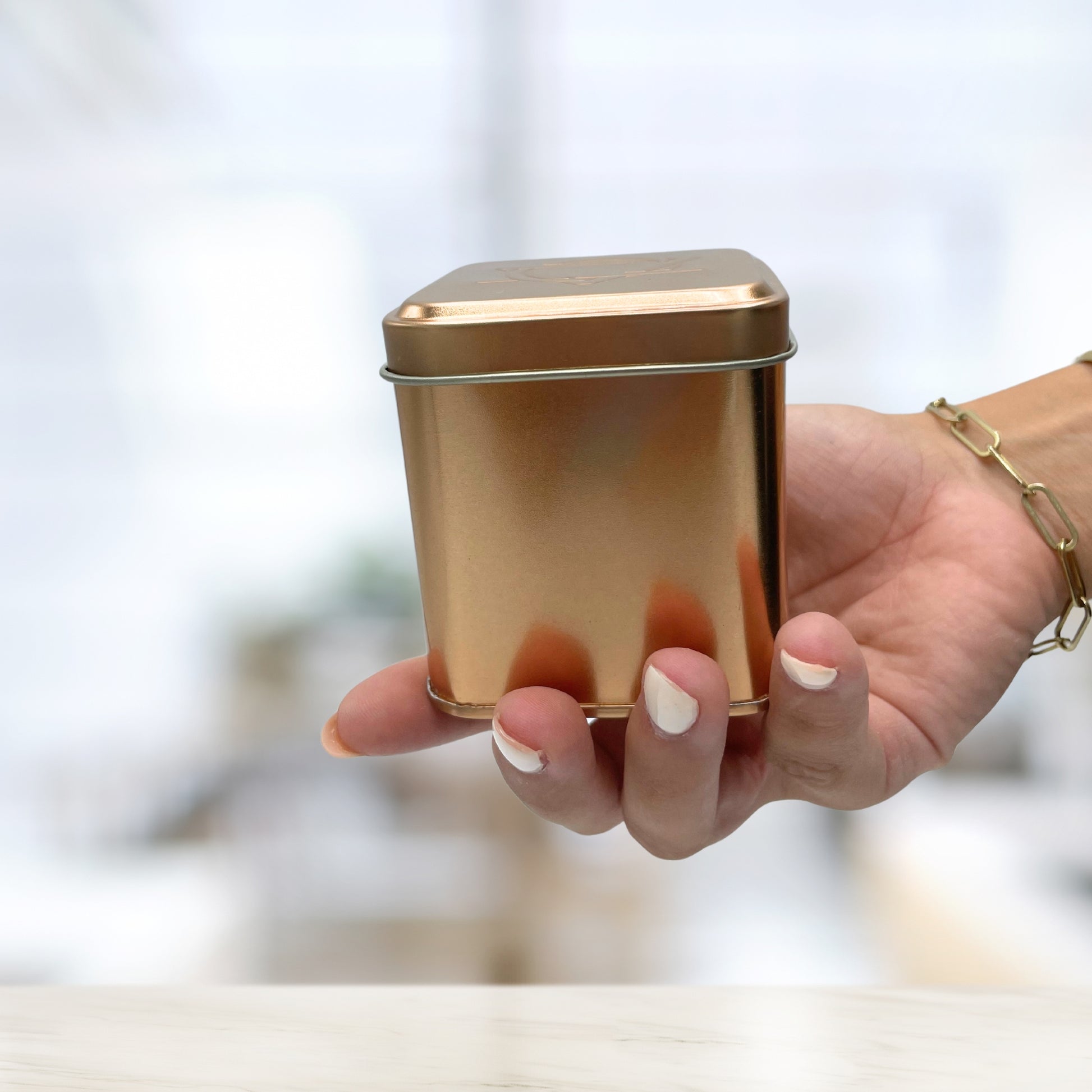 - Boîte carrée de 6,5 x 6,5 x 7 cm avec couvercle