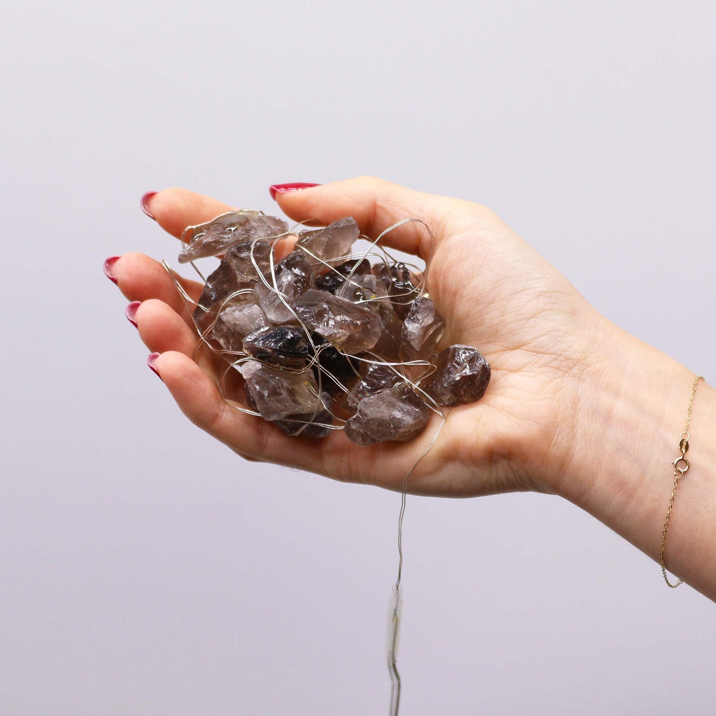 La citrine fumée, réputée pour ses vertus favorisant la clarté mentale et la prospérité, est présentée ici sous une forme véritablement magique. Chaque pierre est sélectionnée pour sa qualité et sa beauté, garantissant que, lorsque ces lumières sont allumées, leur éclat révèle des nuances fascinantes qui captiveront tous les regards. Idéal pour des moments de détente ou pour ajouter une touche d'originalité à vos réceptions les plus intimes, ce produit est plus qu'une simple décoration ; c'est une expérience sensorielle.