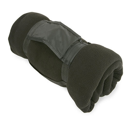 Couverture polaire, enroulée et fixée avec des poignées en polyester, pour le rangement et le transport. Ces couvertures peuvent être utilisées en voiture, à la campagne ou comme couverture sur le canapé. Idéales pour l'enregistrement.