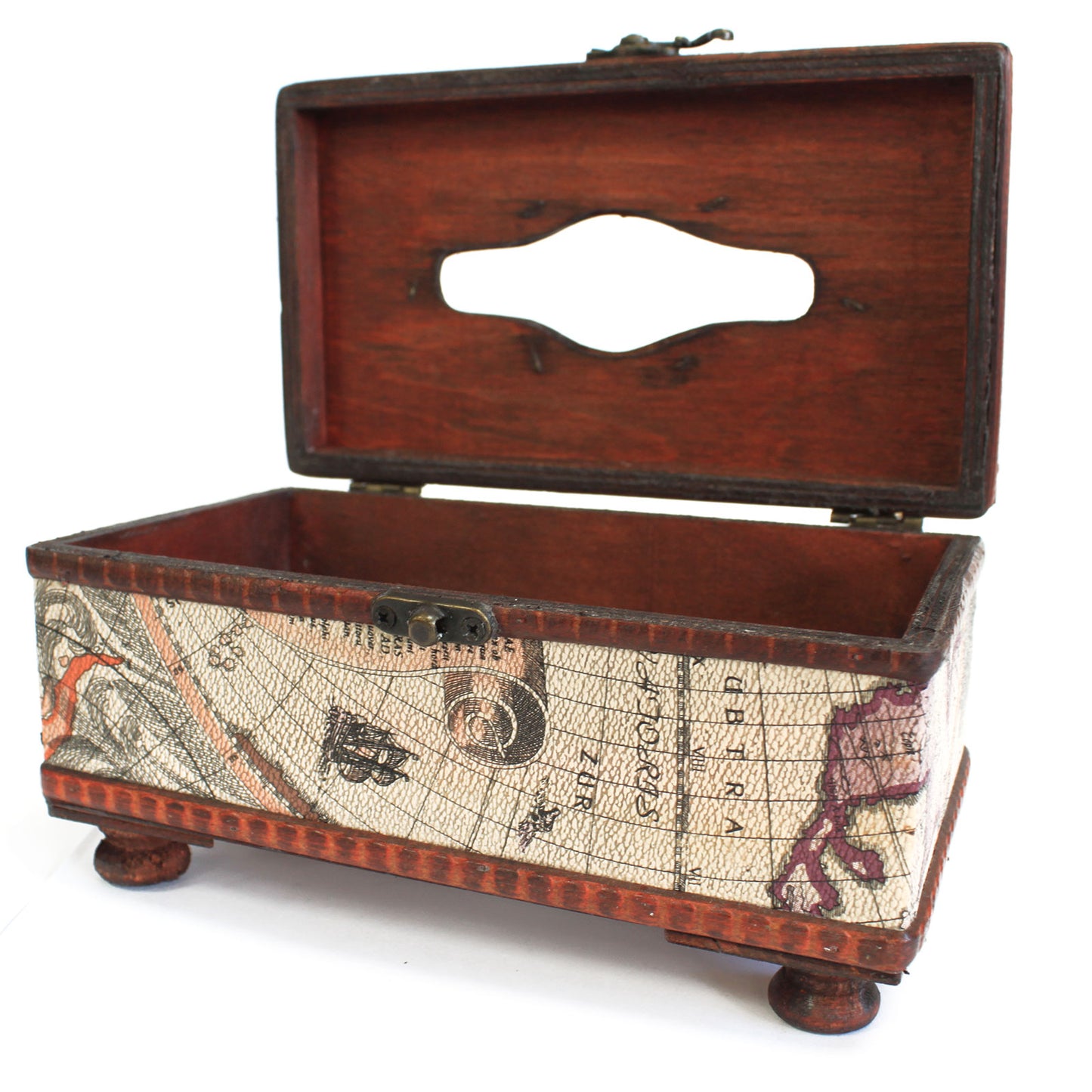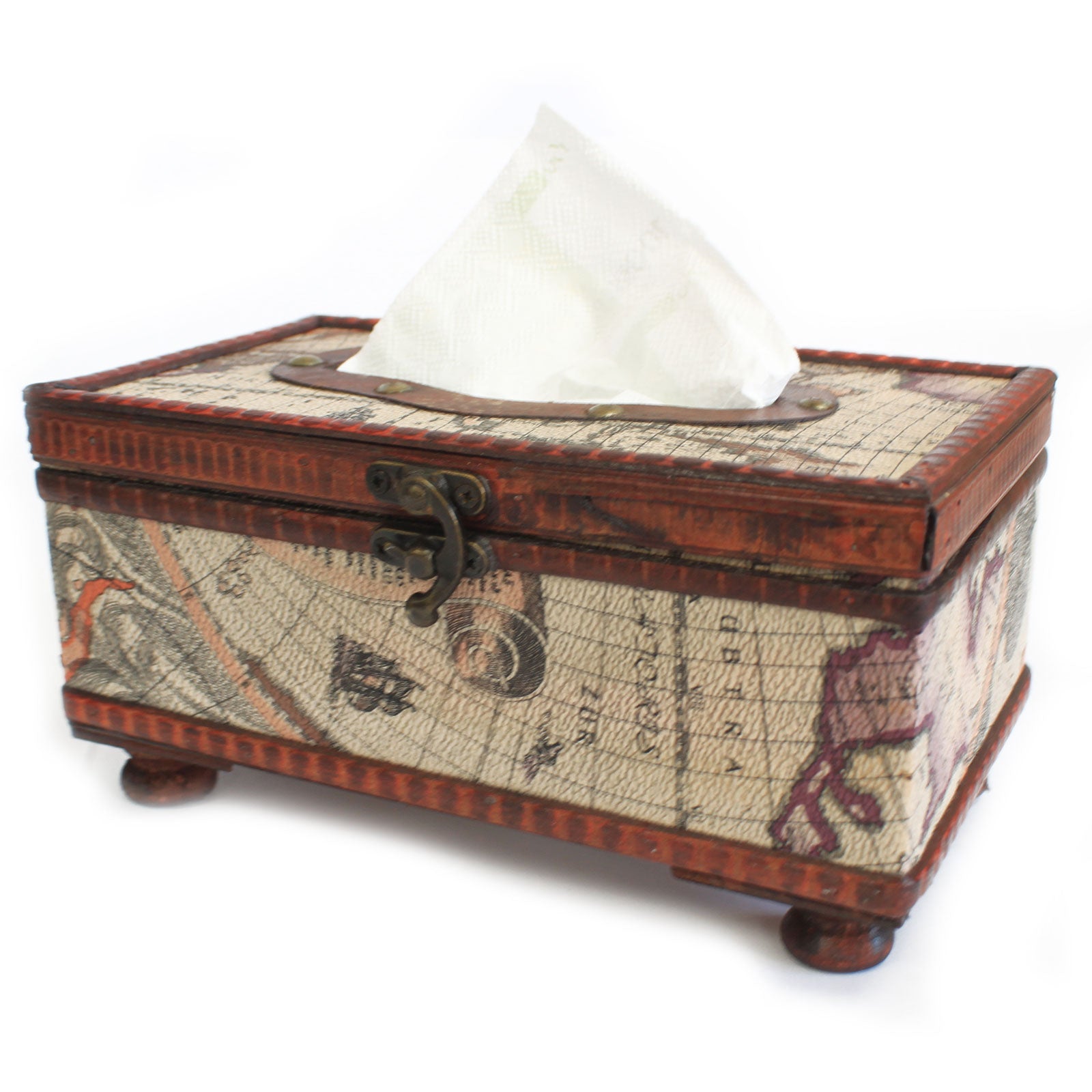 Découvrez le charme et l'élégance que la boîte à mouchoirs sur pieds en forme de carte antique apportera à votre maison ou à votre bureau. Cet accessoire raffiné est non seulement un objet pratique, mais aussi une œuvre d'art qui capture l'essence des anciennes cartes du monde, ce qui en fait une pièce de décoration unique.