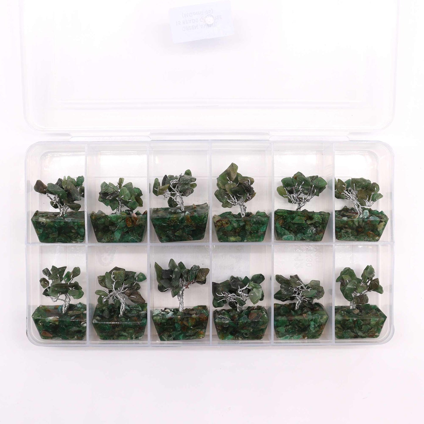 Mini arbre à pierres précieuses sur base en orgonite – Aventurine verte (15 pierres)
