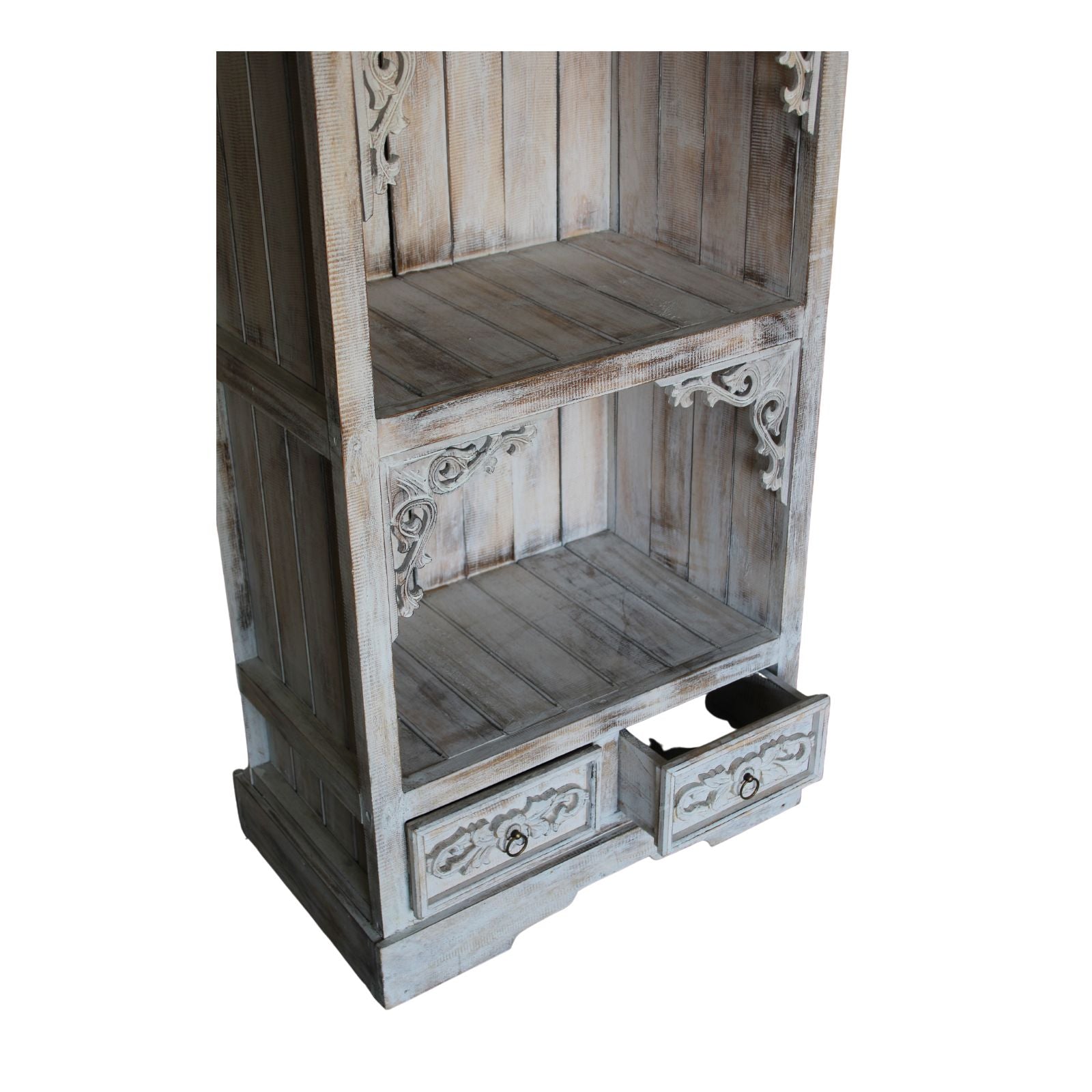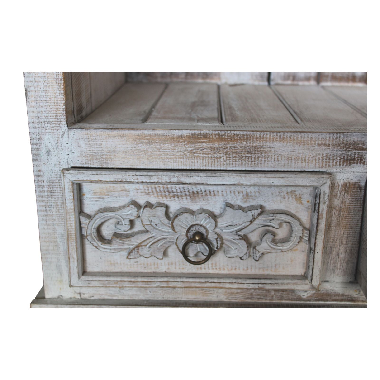 Le meuble de salle de bain Albasia blanchi à la chaux est un choix élégant et sophistiqué pour transformer votre salle de bain. Fabriqué en bois d'Albasia, réputé pour sa légèreté et sa durabilité, ce meuble apporte une touche chaleureuse et naturelle à tout espace. Sa finition blanchie à la chaux lui confère non seulement un aspect vintage et chaleureux, mais met également en valeur la texture et les lignes naturelles du bois, créant un effet visuel unique et enveloppant.