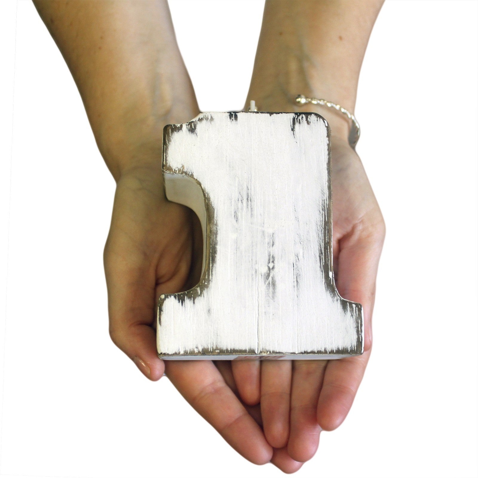 Charmants bougeoirs d'anniversaire blancs en forme de chiffres. Chaque lettre est fabriquée à la main pour AW Artisan Dropshipping à Bali en bois d'albésia et présente une finition blanche lavée à la main.