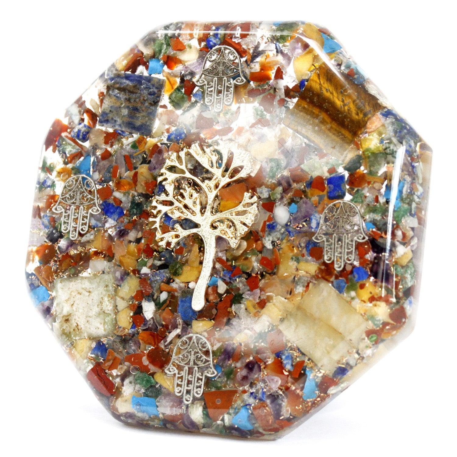 Le design de la grande orgonite de bureau Arbre de Vie intègre le symbolisme de l'Arbre de Vie, symbole du lien entre la Terre, l'Esprit et l'Univers, unissant le terrestre au divin. Fabriquée avec des matériaux de haute qualité, chaque pièce est soigneusement conçue pour garantir non seulement sa beauté, mais aussi sa fonctionnalité. Sa grande taille en fait le point central de toute pièce, favorisant un espace de travail plus harmonieux et productif.