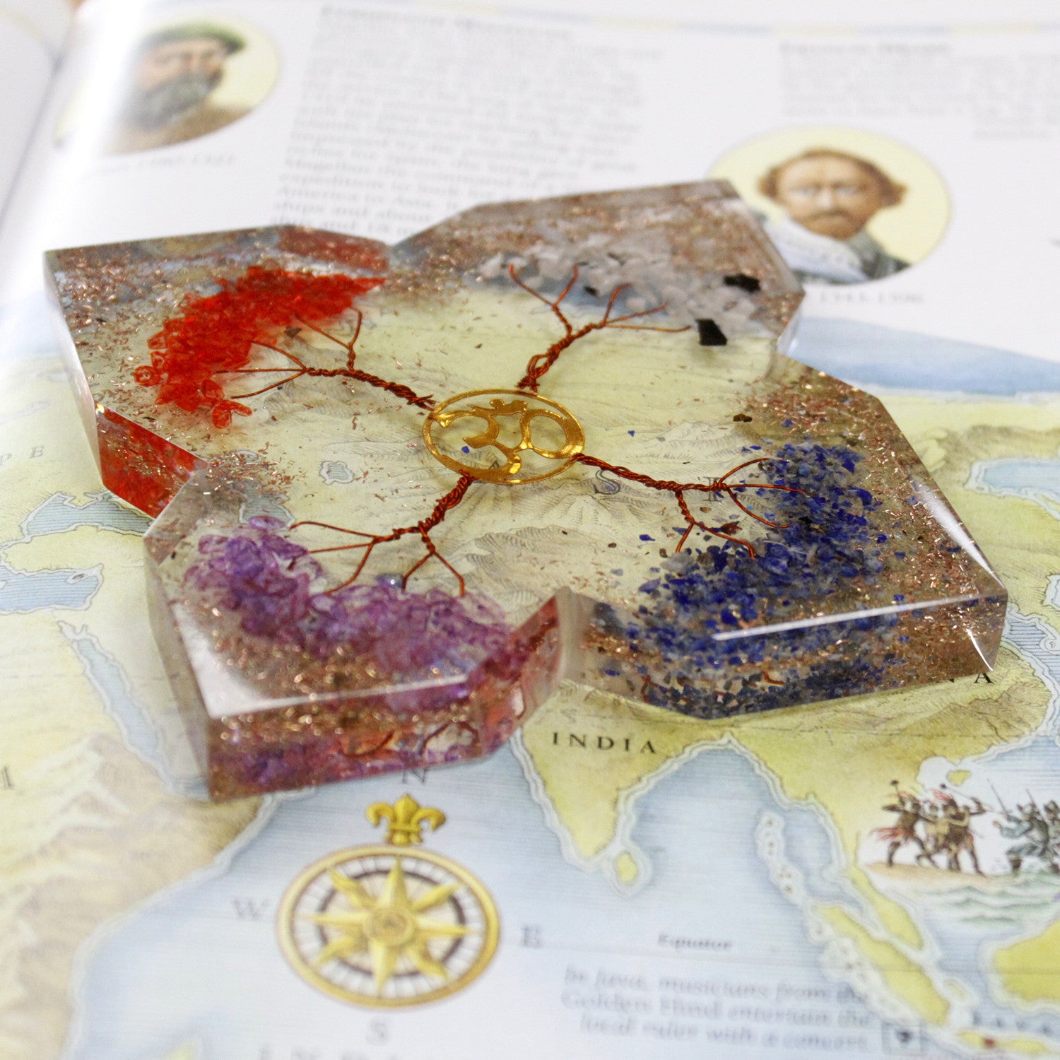 Orgonite de bureau - Cuivre avec motif 4 arbres - Grand