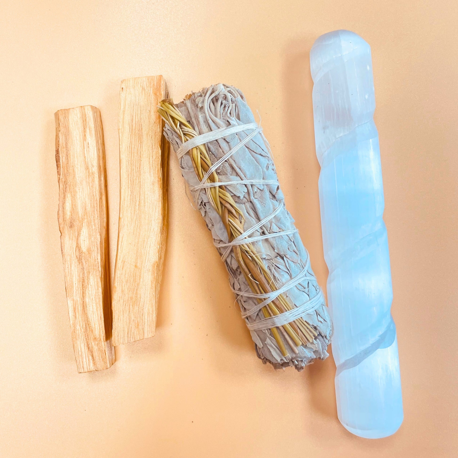 À l'ouverture du Pack Purification , vous trouverez une sélection d'éléments essentiels, chacun sélectionné pour ses propriétés purifiantes. Il comprend de la sauge blanche, reconnue pour sa capacité à purifier l'environnement des énergies négatives, ainsi que du palo santo, prisé pour son arôme apaisant et son effet relaxant. Ce pack comprend également une sélection de pierres semi-précieuses, spécifiquement sélectionnées pour leurs vertus équilibrantes et protectrices.