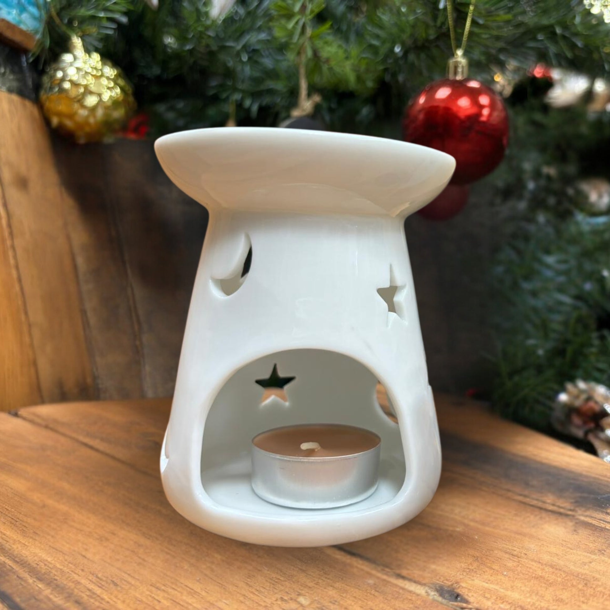 • Comprend un brûleur lune et étoile, une huile parfumée au gingembre et des bougies chauffe-plat à la cannelle