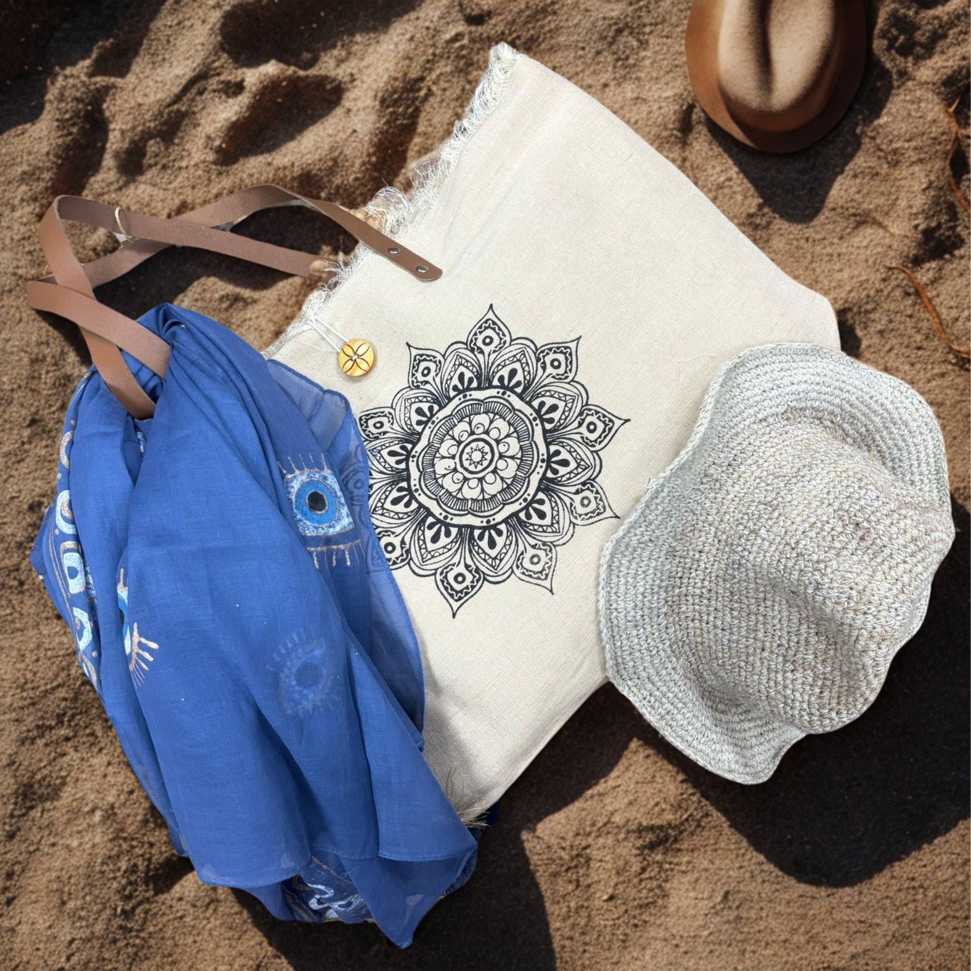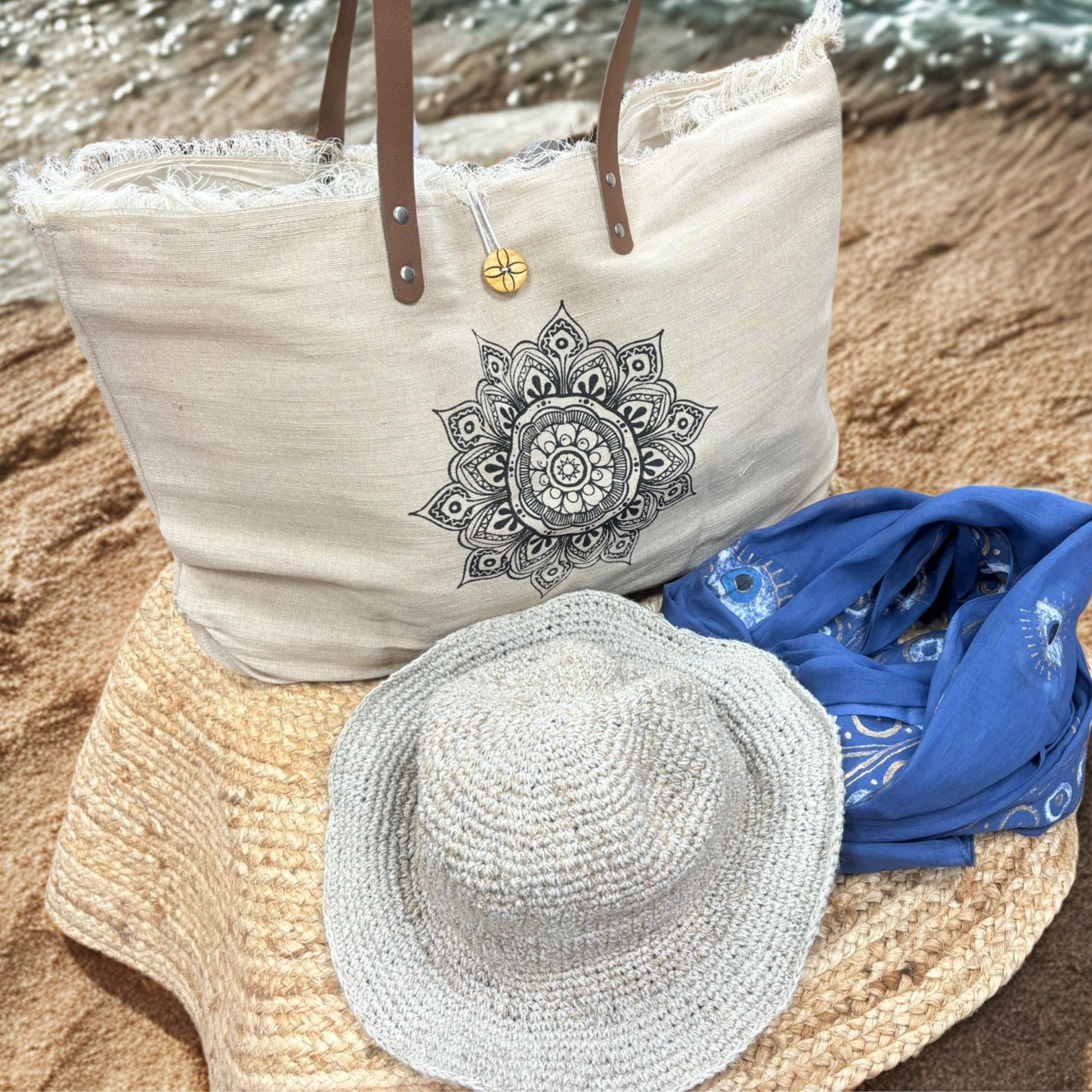 - Bolso Natural con asa de piel, complemento atemporal y artesanal