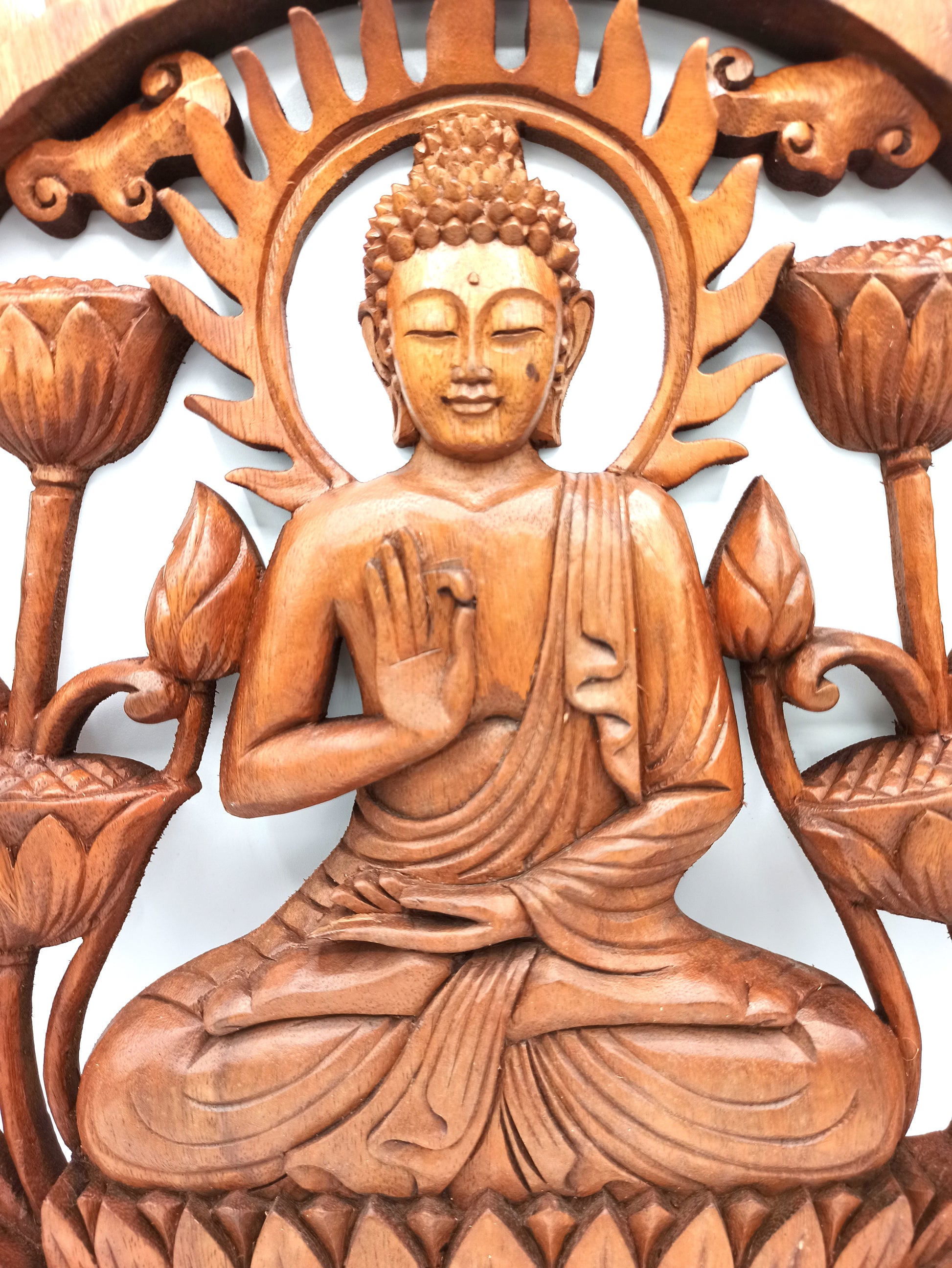 Laissez le Panneau en Bois Bouddha et Lotus - 40cm devenir le centre d'attention de votre maison, offrant non seulement un élément décoratif, mais une invitation à l'introspection et au bien-être personnel à travers son puissant symbolisme.