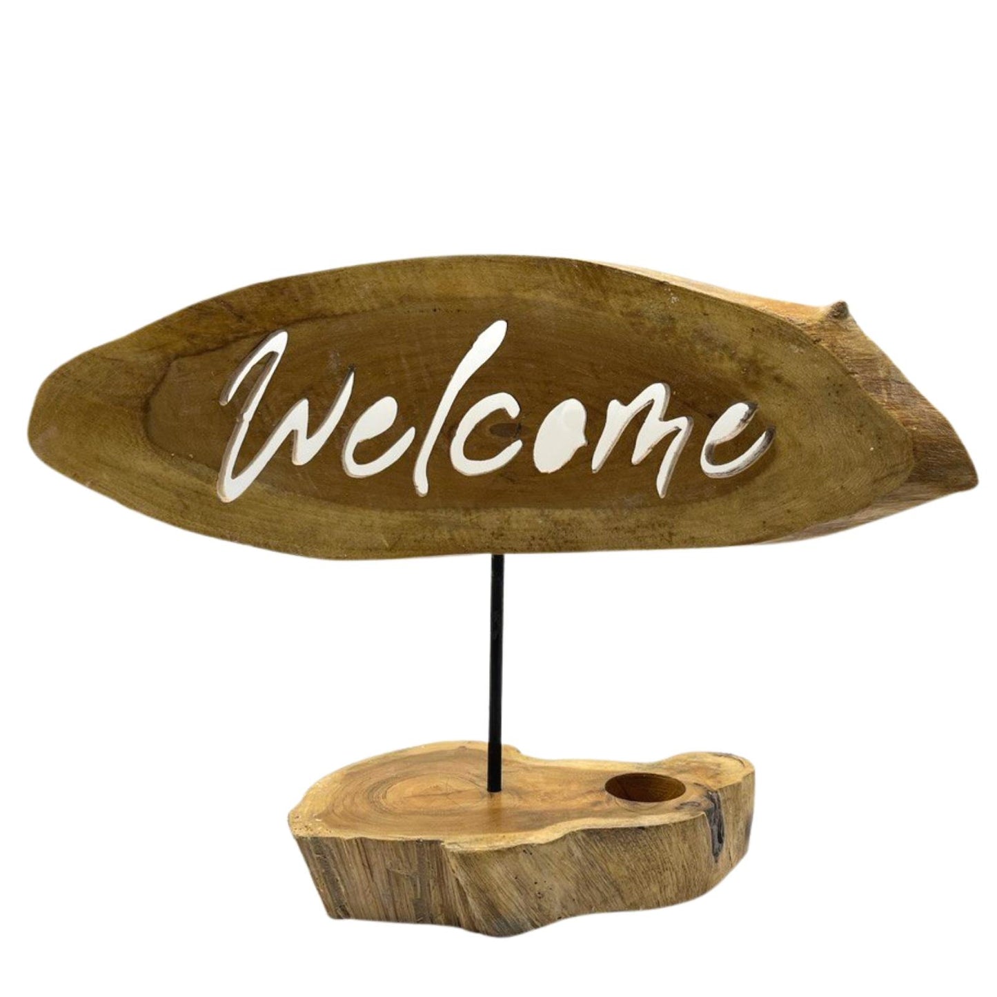 Ajoutez une touche chaleureuse et accueillante à n'importe quel recoin de votre maison avec le bougeoir Welcome Sign . Cet accessoire élégant invite chaleureusement vos invités et diffuse un éclairage doux et chaleureux, idéal pour créer une atmosphère sereine et accueillante.