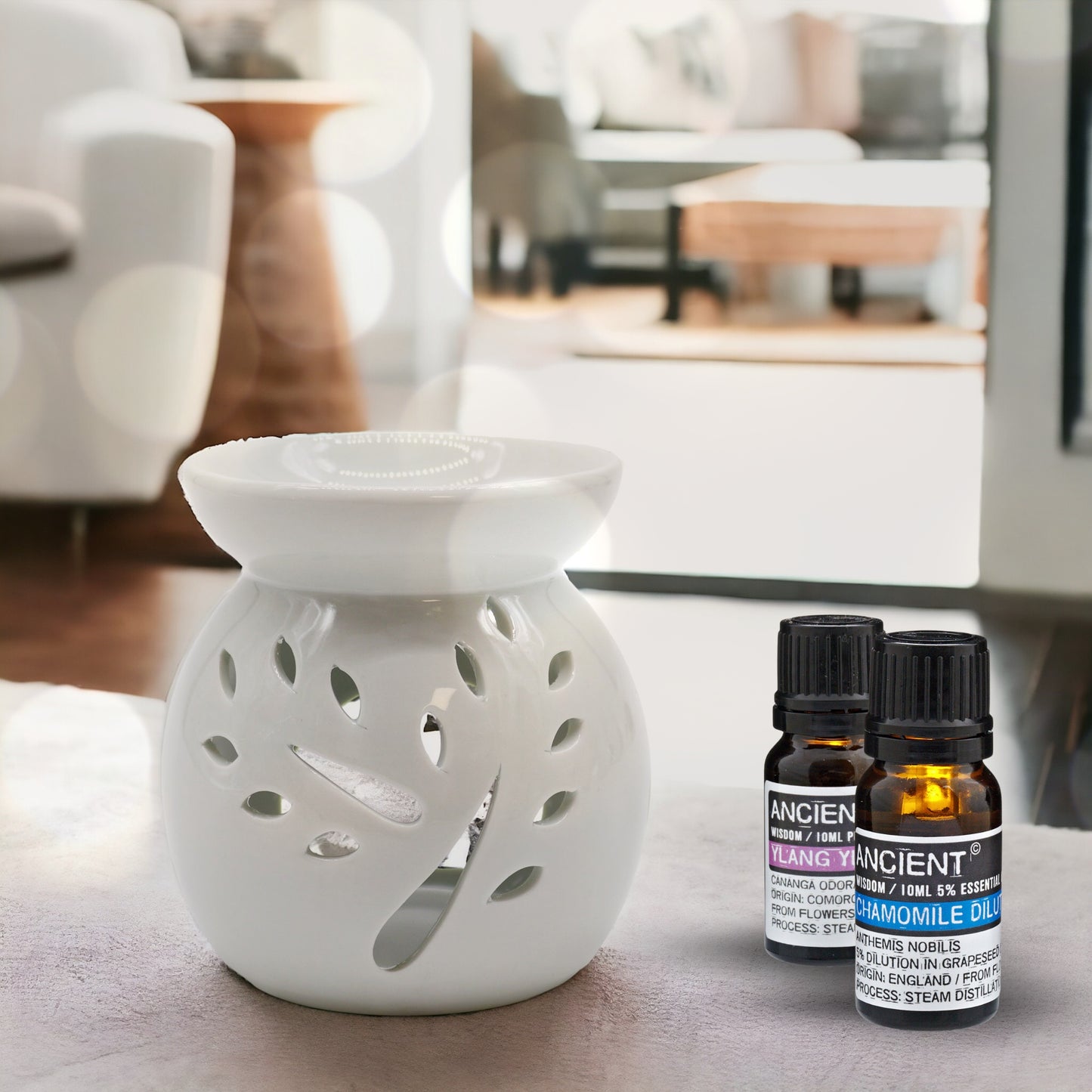 Brûleur à huile classique en céramique blanche. Ce brûleur à huile est fabriqué avec la meilleure céramique disponible, garantissant un haut niveau de qualité. De par leur qualité et leur prix, ces brûleurs à huile sont une excellente idée cadeau pour toute occasion spéciale.