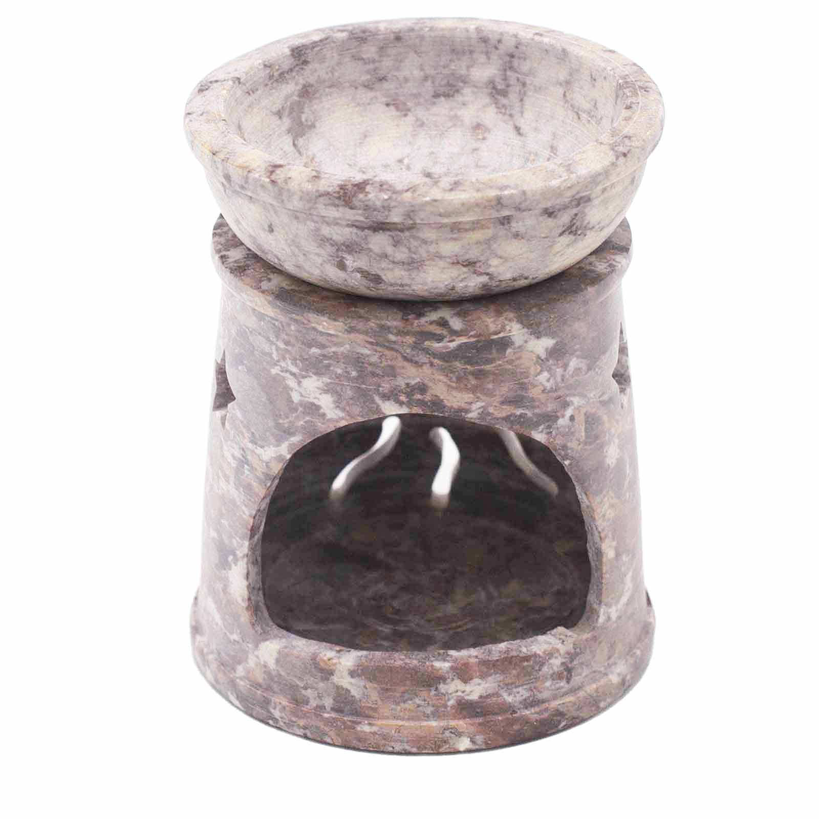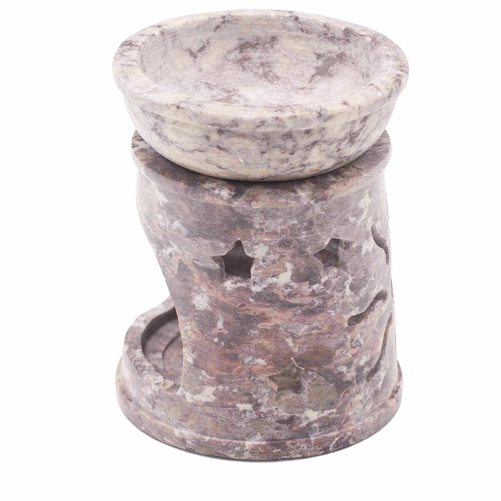 Petit brûle-parfum en stéatite 8 cm - Soleil et étoiles