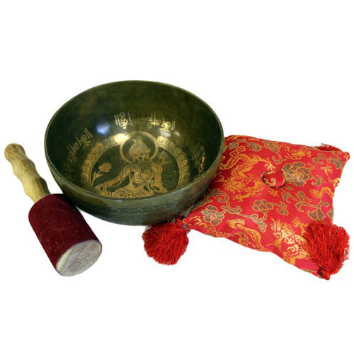 Plongez dans la spiritualité et l'élégance avec notre « Ensemble de bols chantants en laiton Tara doré spécial », expression sublime de dévotion et d'un savoir-faire exceptionnel. Cet ensemble comprend un bol en laiton magnifiquement travaillé dédié à Tara, la divinité bouddhiste symbole de compassion et de protection. L'élégante dorure souligne la beauté intrinsèque du laiton, créant un chef-d'œuvre non seulement visuellement époustouflant, mais aussi aux sonorités harmonieuses qui enrichiront vos pratiques spirituelles.