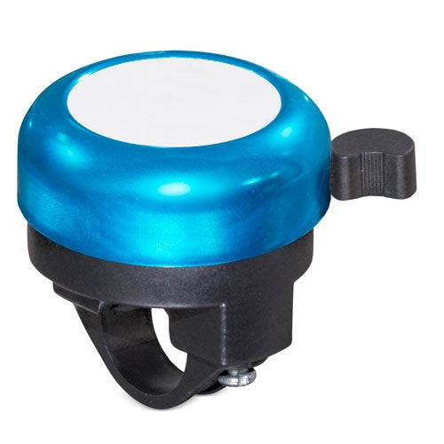 Sonnette de vélo avec boîtier métallique disponible en plusieurs coloris. Facile à installer grâce au système de fixation à vis inclus. Sa surface blanche au centre permet d'apposer facilement un logo.