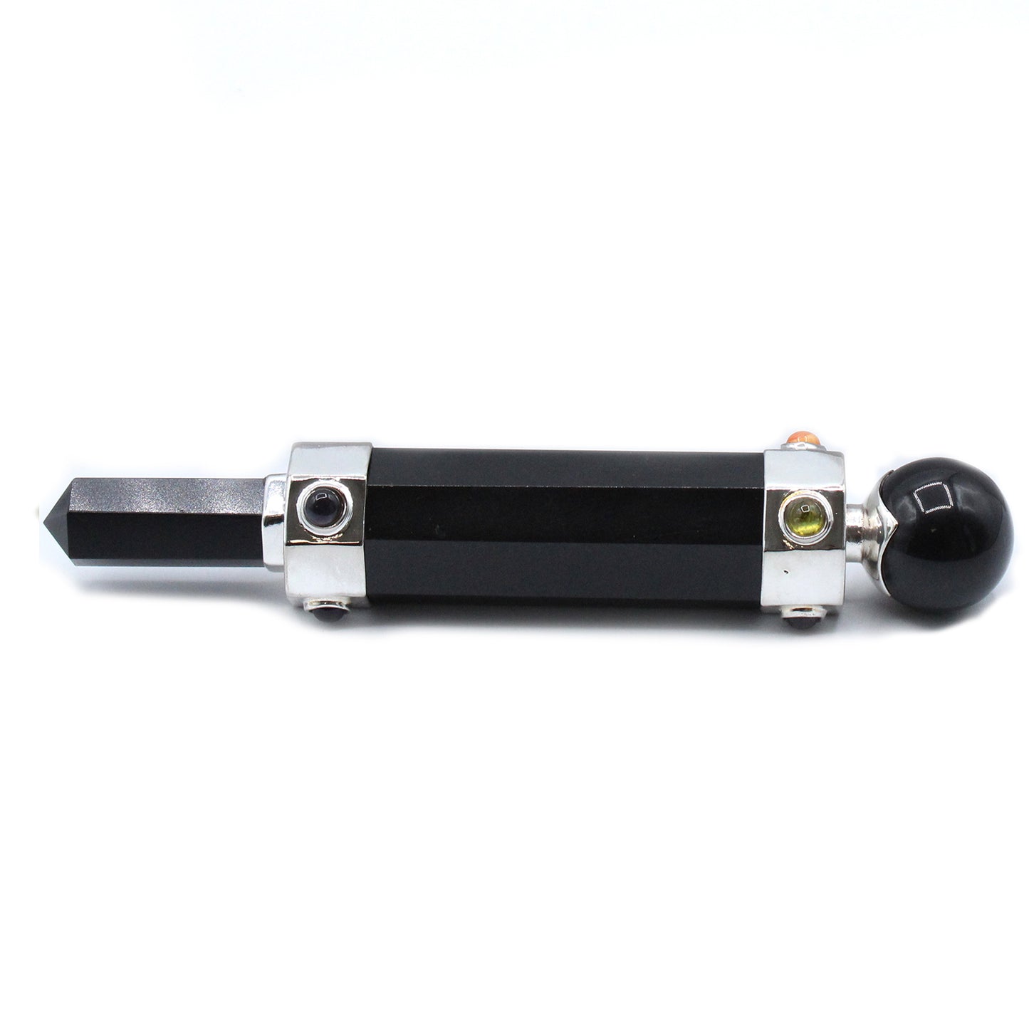 Baguette de guérison hexagonale en cristal - 12 cm - Agate noire