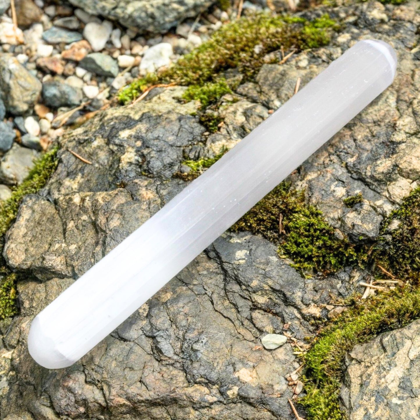 • Baguette de sélénite de 16 cm avec les deux extrémités arrondies