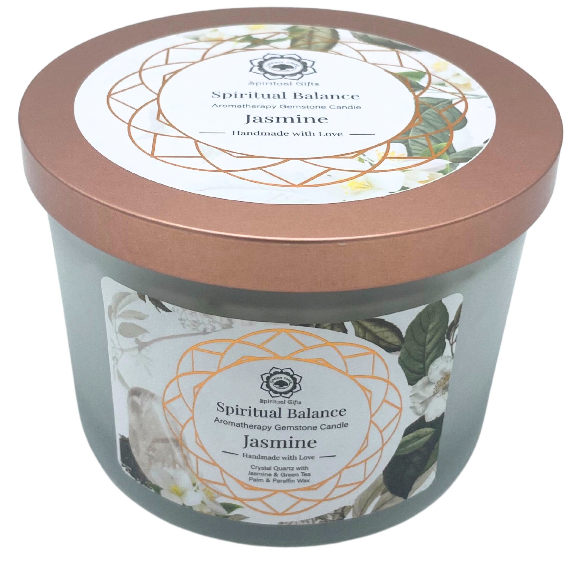 Bougie au jasmin et aux pierres précieuses de quartz cristallin - Équilibre spirituel