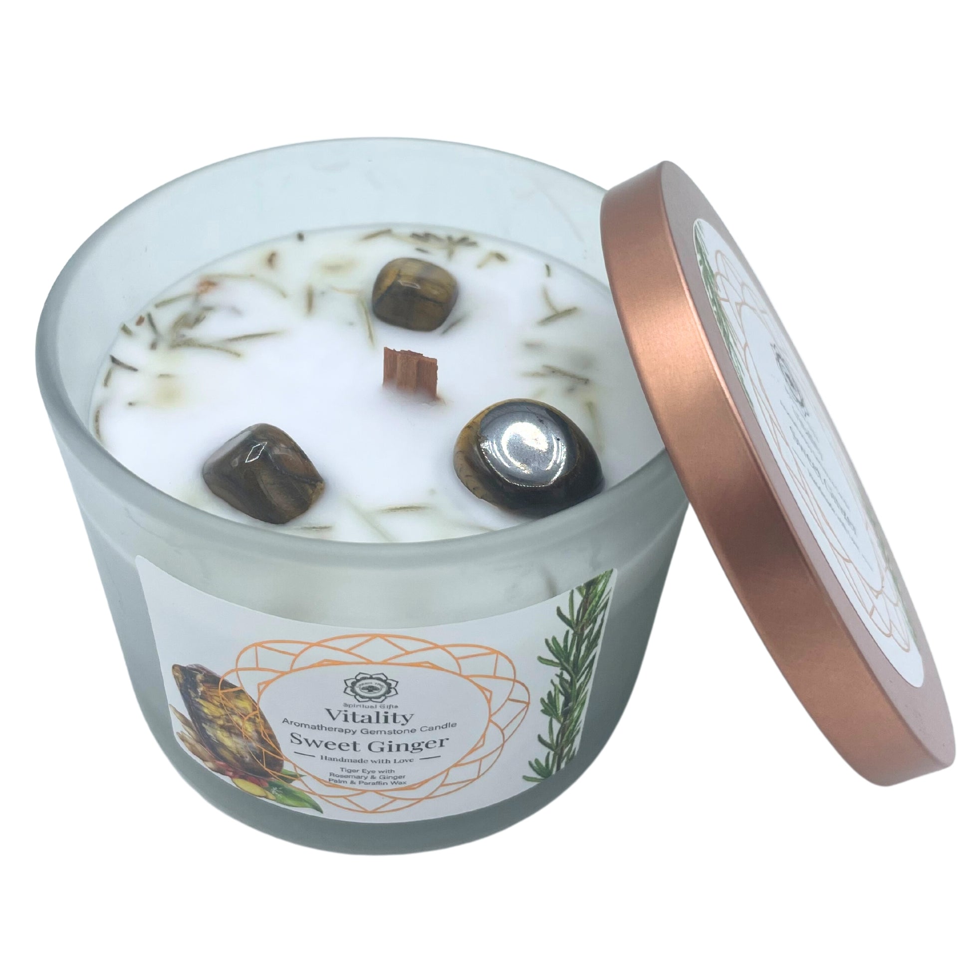Bougie aux pierres précieuses au gingembre et à l'œil de tigre - Vitalité